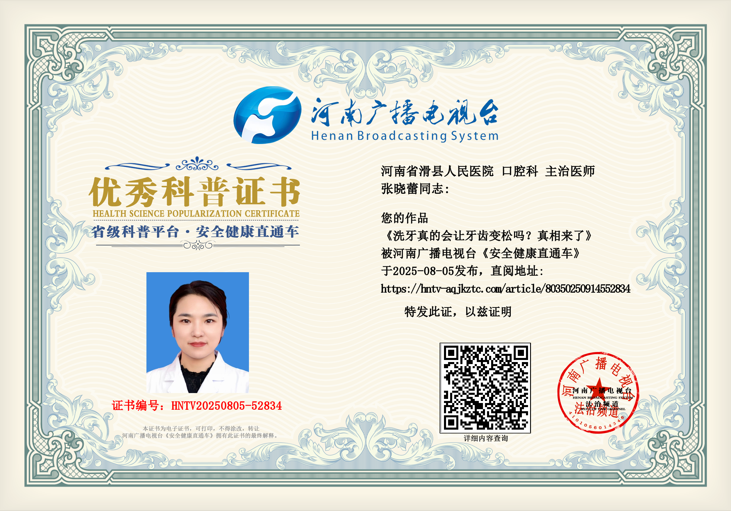 (张晓蕾 河南省滑县人民医院 口腔科 主治医师)