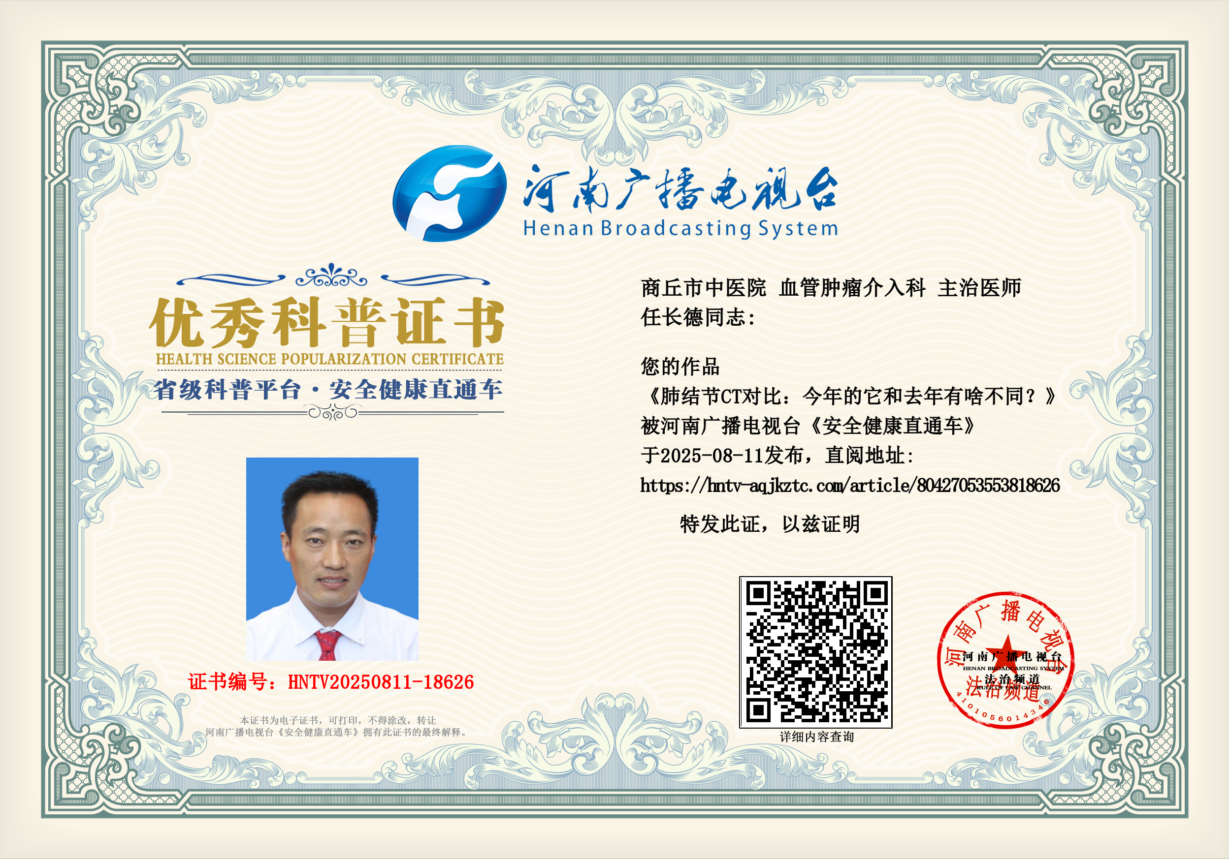 (任长德 商丘市中医院 血管肿瘤介入科 主治医师)