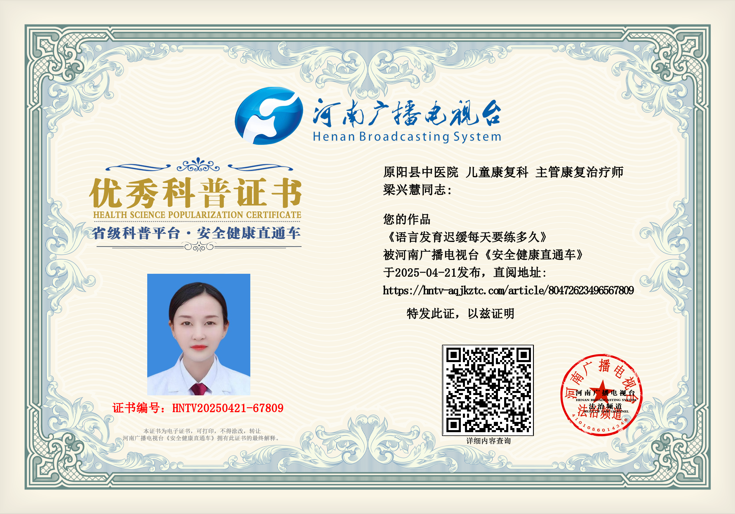 (梁兴慧 原阳县中医院 儿童康复科 主管康复治疗师)