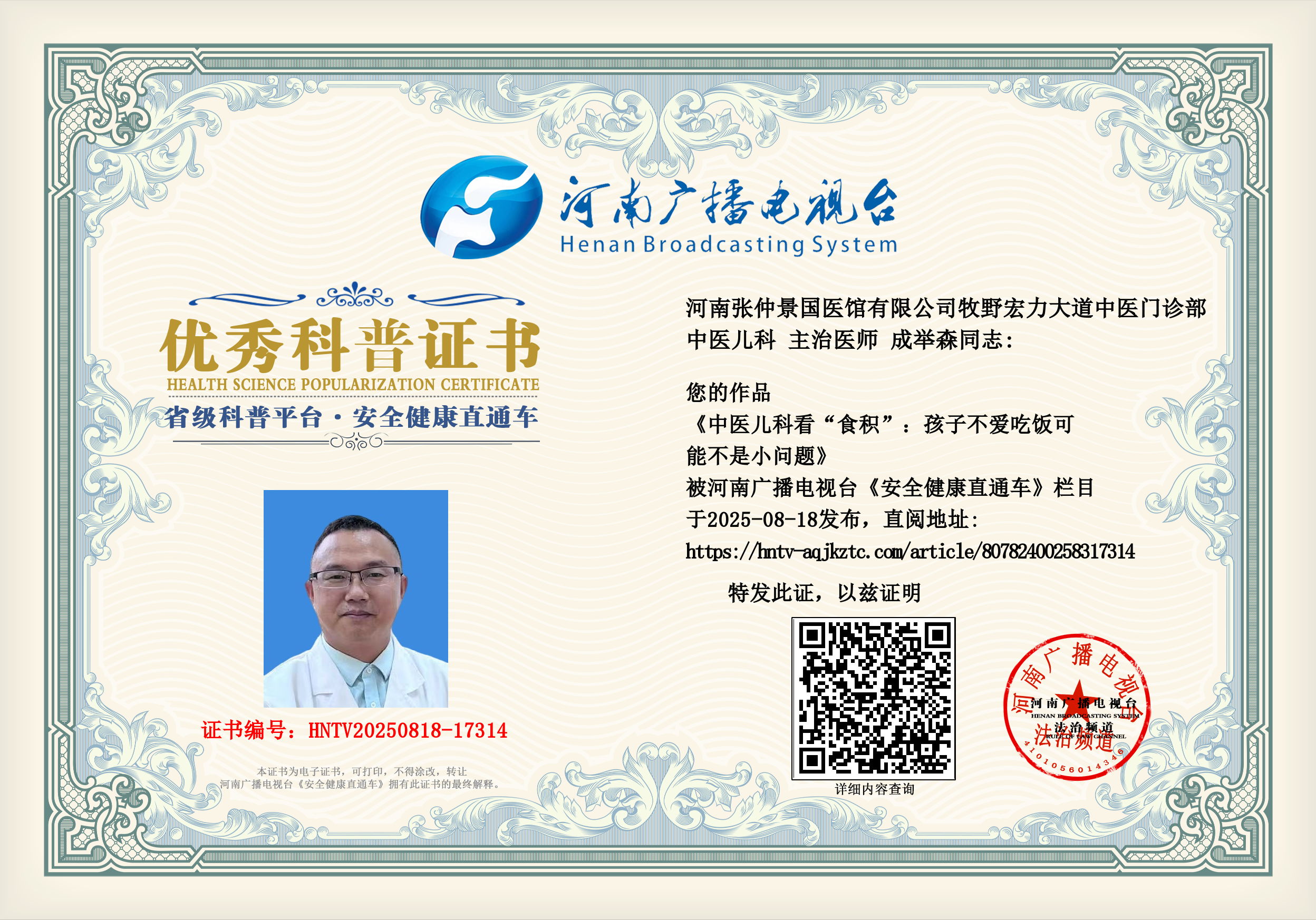 (成举森 河南张仲景国医馆有限公司牧野宏力大道中医门诊部 中医儿科 主治医师)