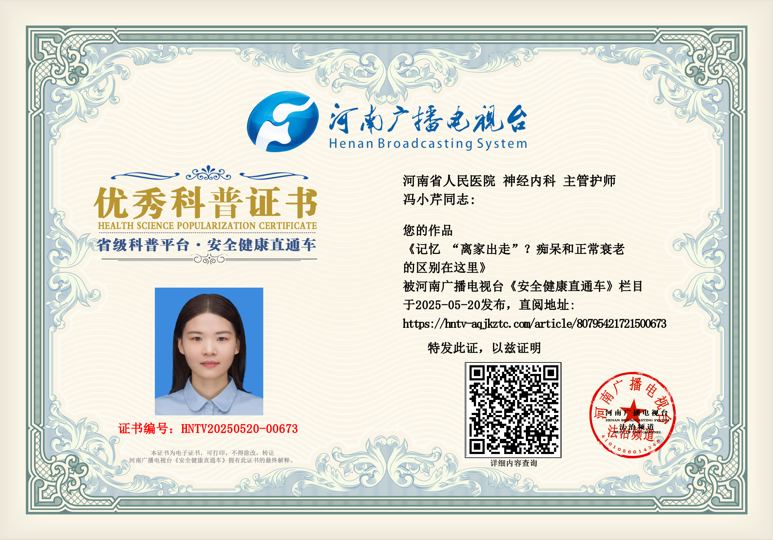 (冯小芹 河南省人民医院 神经内科 主管护师)