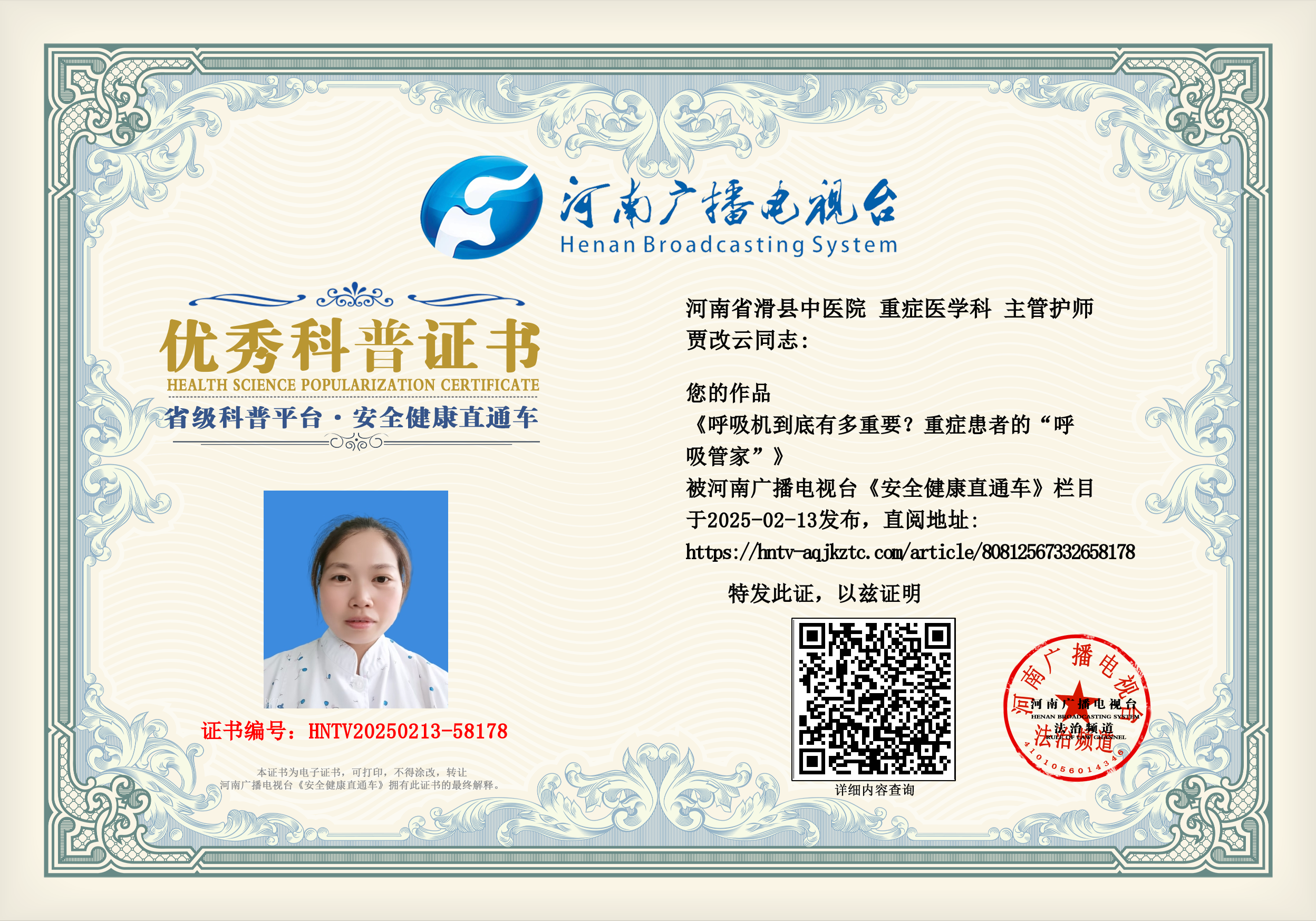 (贾改云 河南省滑县中医院 重症医学科 主管护师)