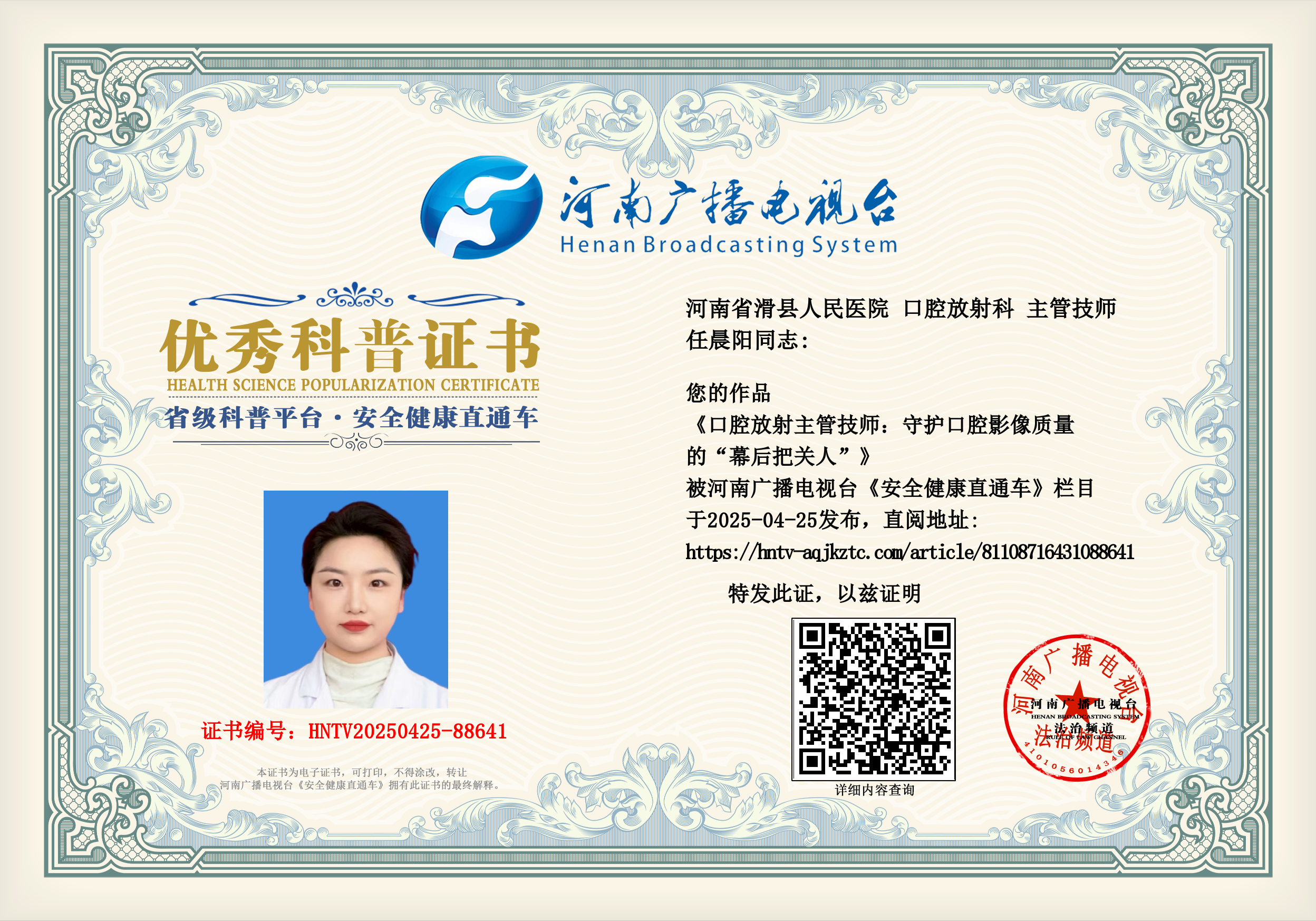 (任晨阳 河南省滑县人民医院 口腔放射科 主管技师)