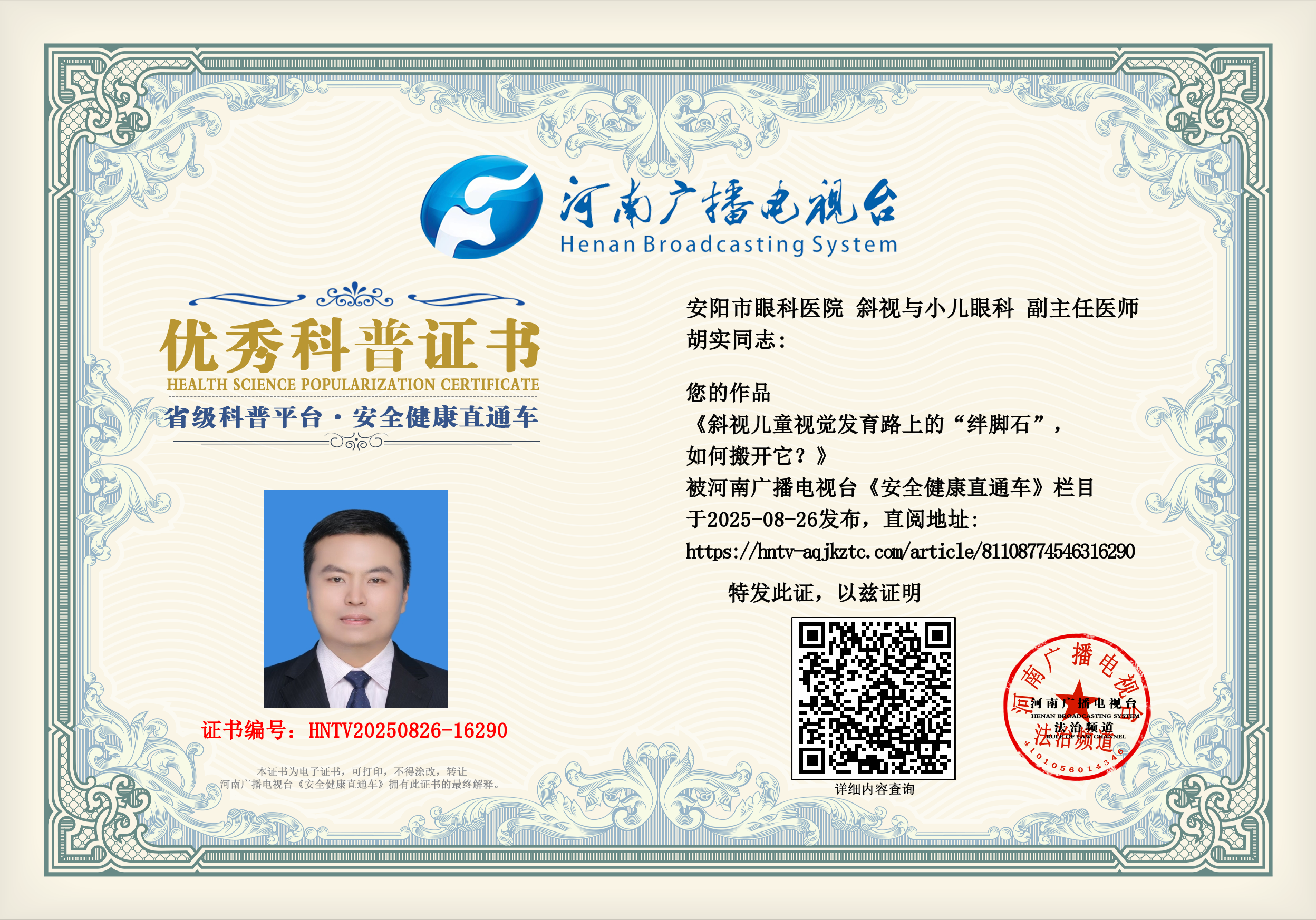 (胡实 安阳市眼科医院 斜视与小儿眼科 副主任医师)