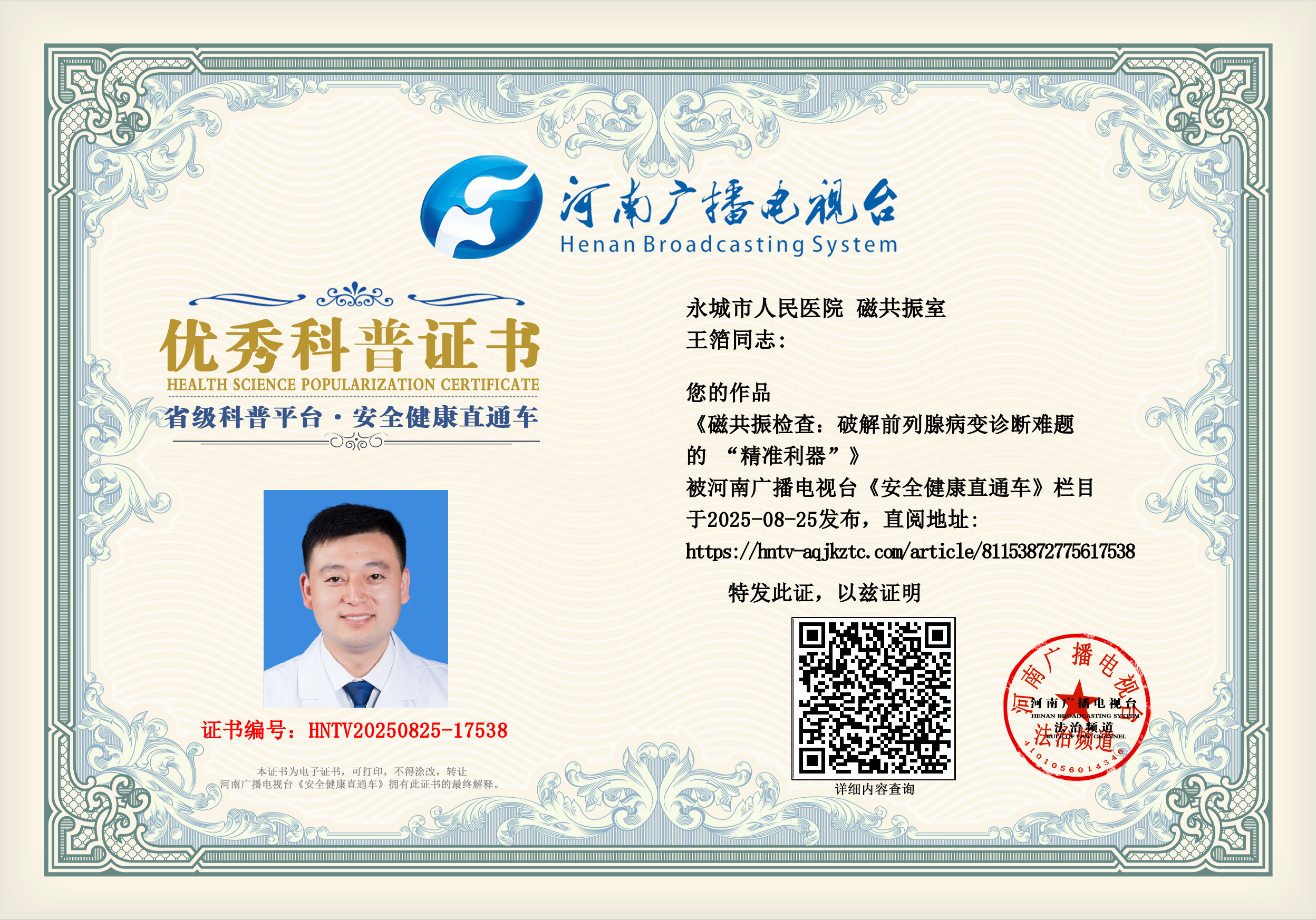 (王箔 永城市人民医院 磁共振室)