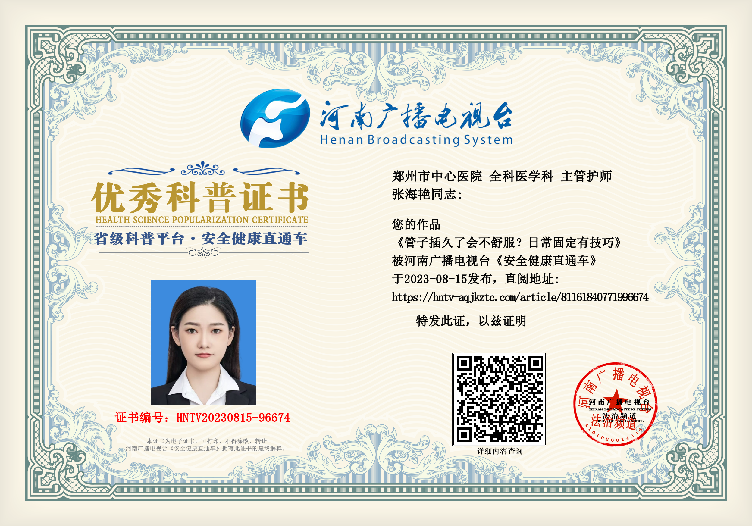 (张海艳 郑州市中心医院 全科医学科 主管护师)
