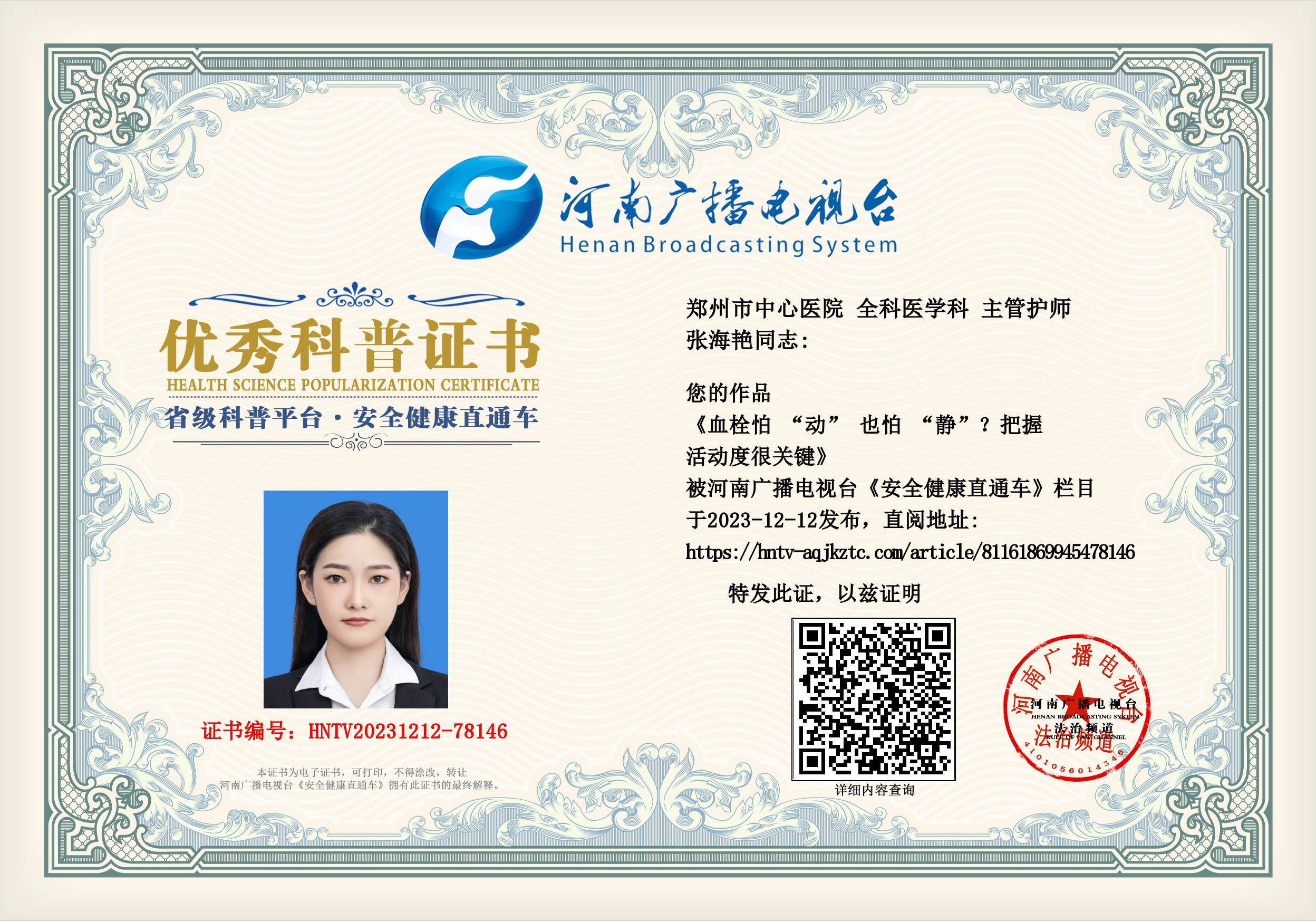 (张海艳 郑州市中心医院 全科医学科 主管护师)