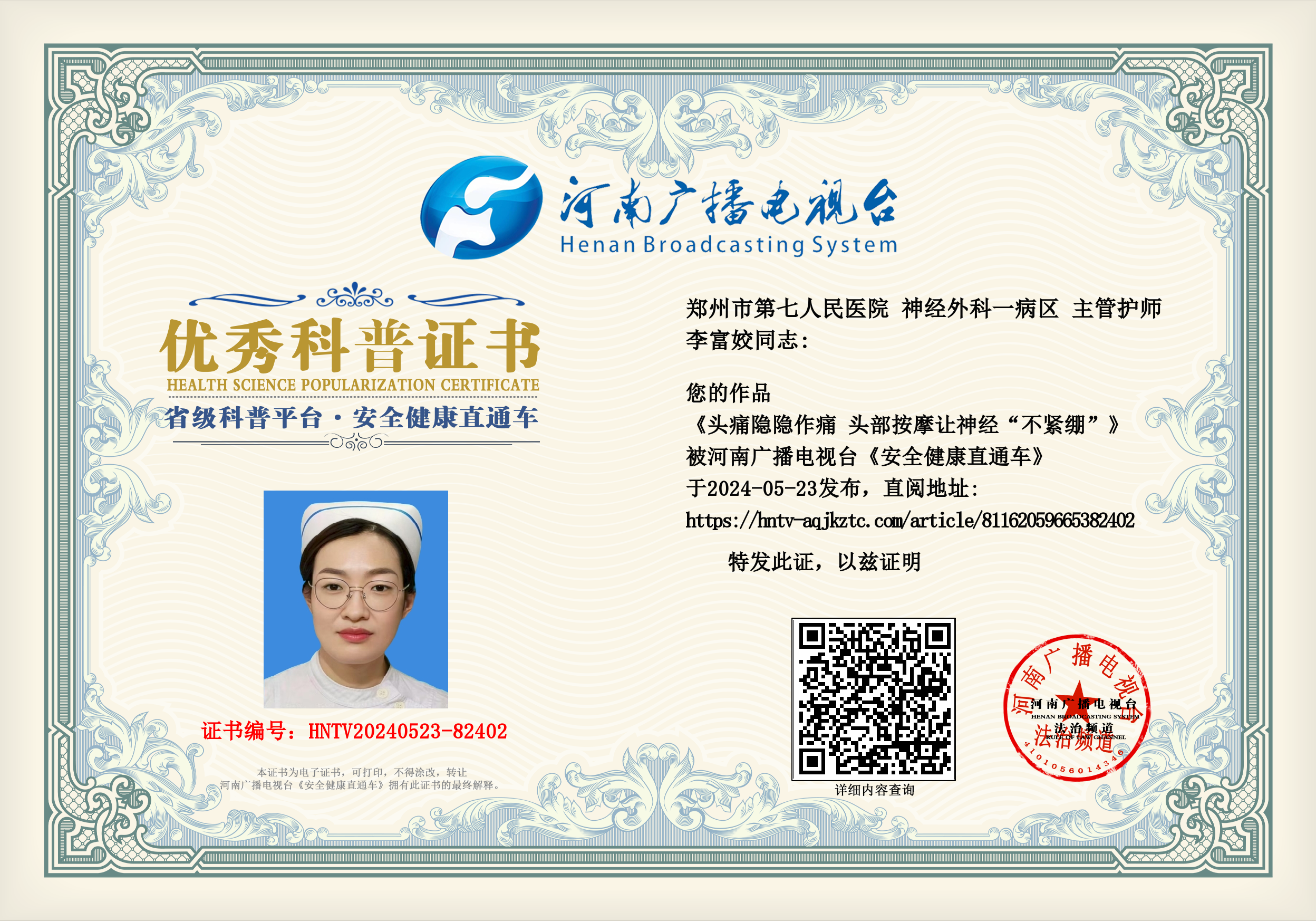 (李富姣 郑州市第七人民医院 神经外科一病区 主管护师)