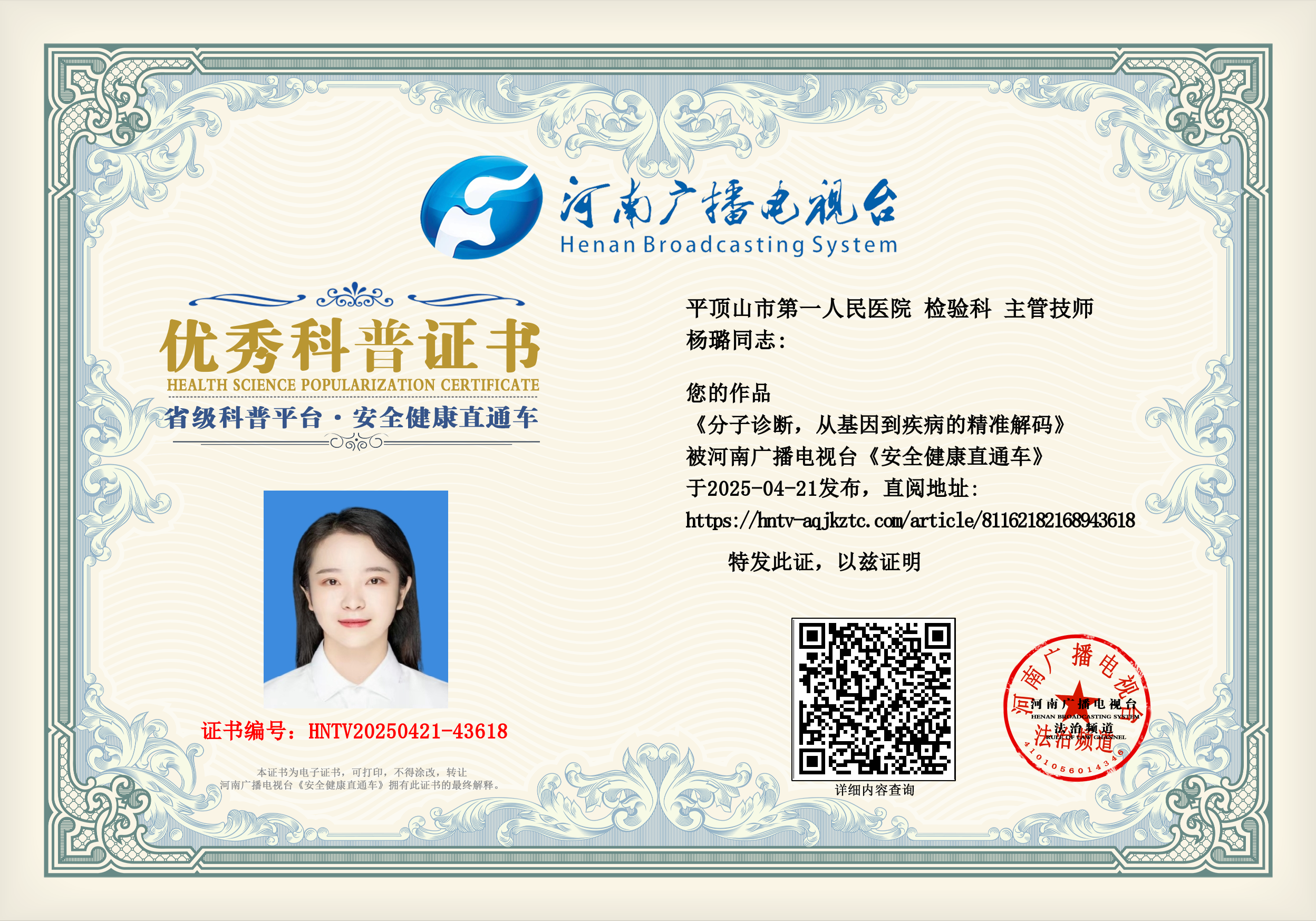 (杨璐 平顶山市第一人民医院 检验科 主管技师)