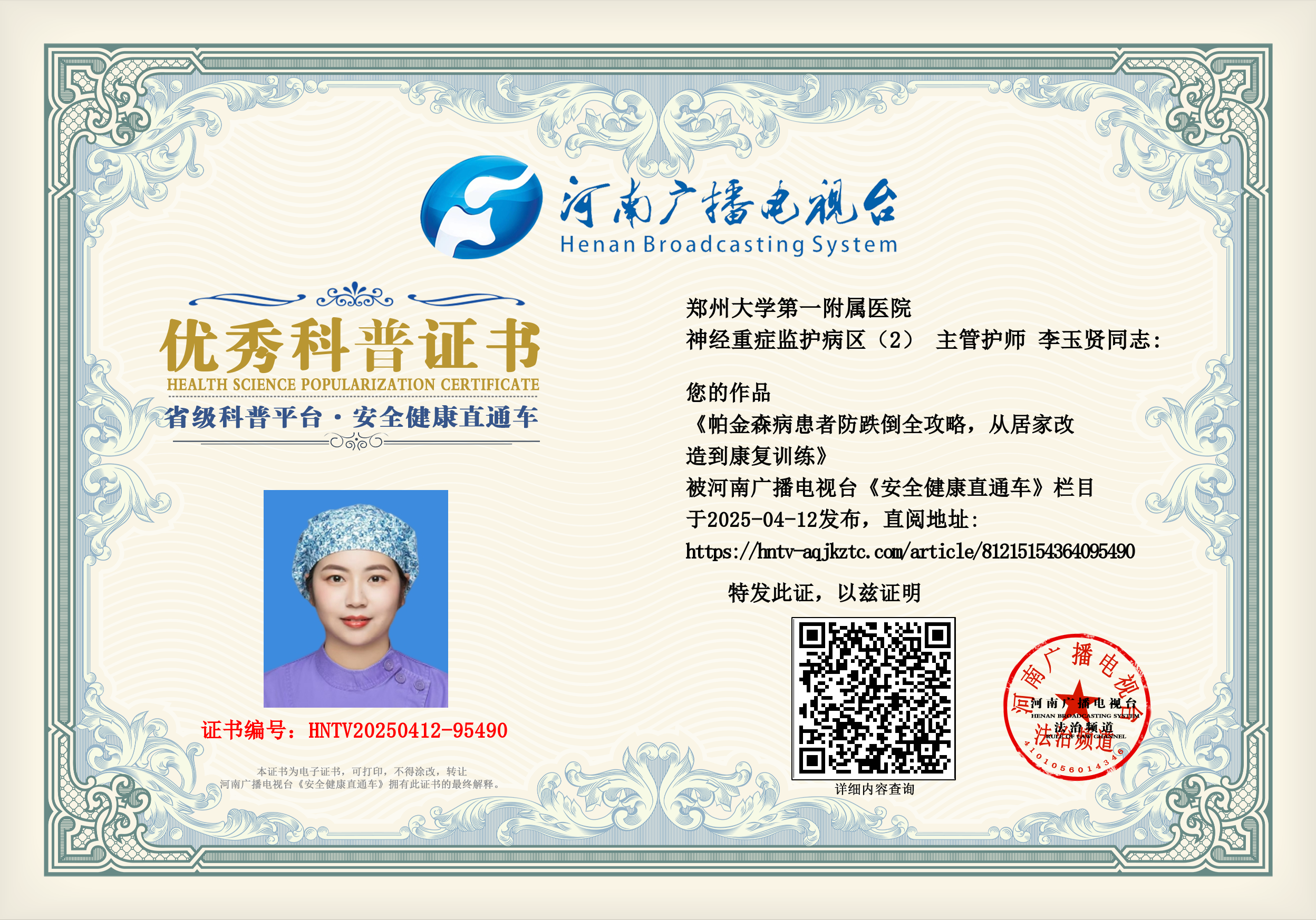 (李玉贤 郑州大学第一附属医院 神经重症监护病区(2) 主管护师)