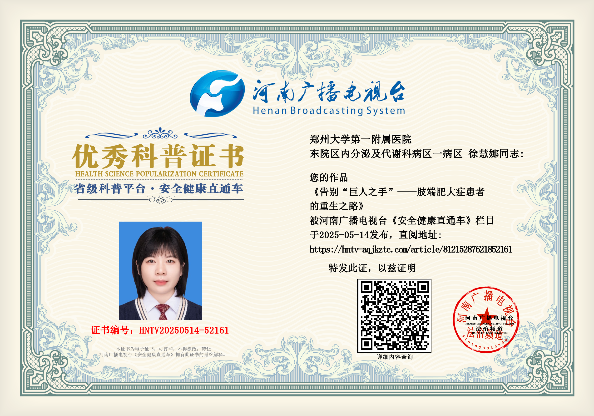 (徐慧娜 郑州大学第一附属医院 东院区内分泌及代谢科病区一病区 主管护师)