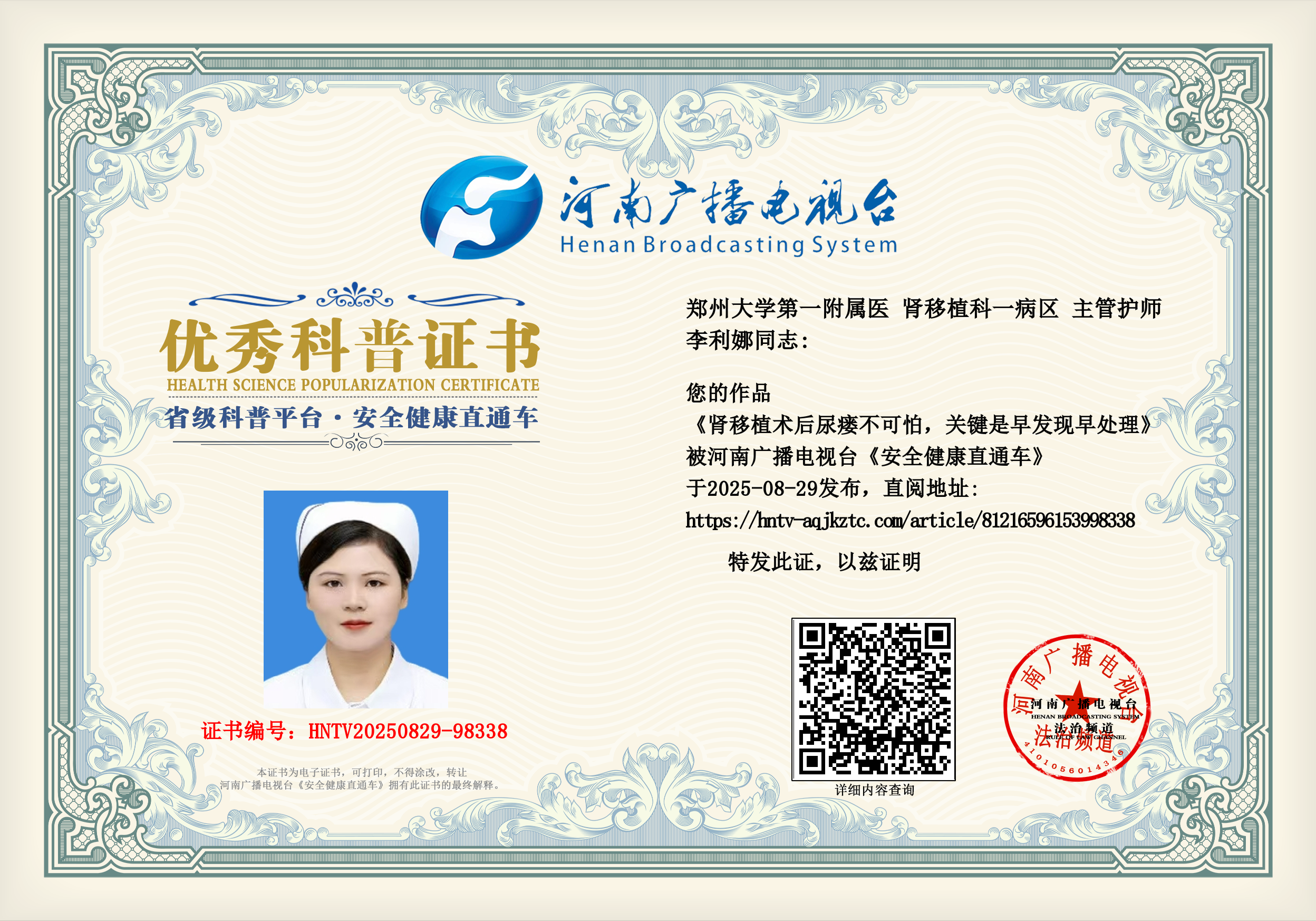 (李利娜 郑州大学第一附属医 肾移植科一病区 主管护师)