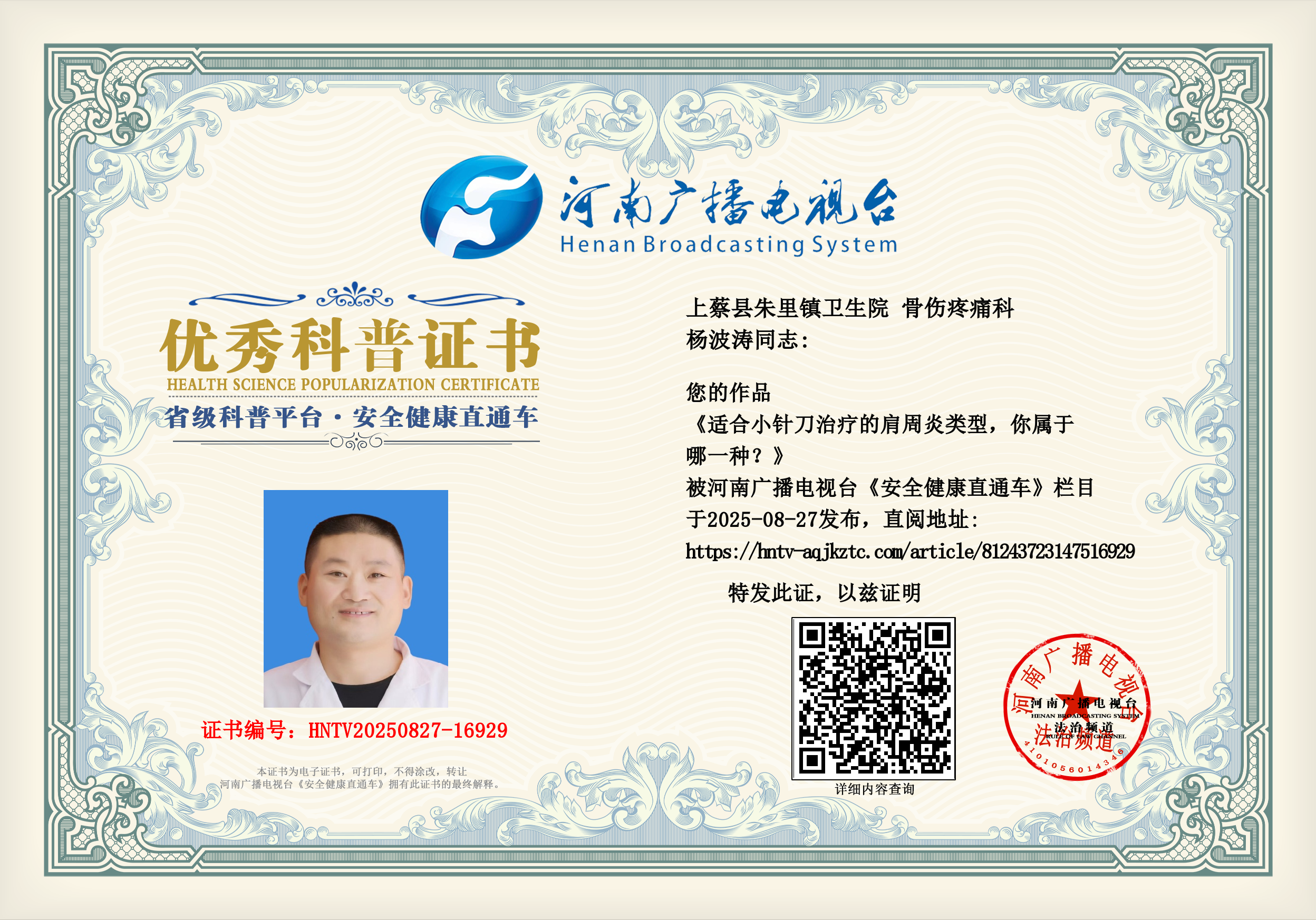 (杨波涛 上蔡县朱里镇卫生院 骨伤疼痛科)