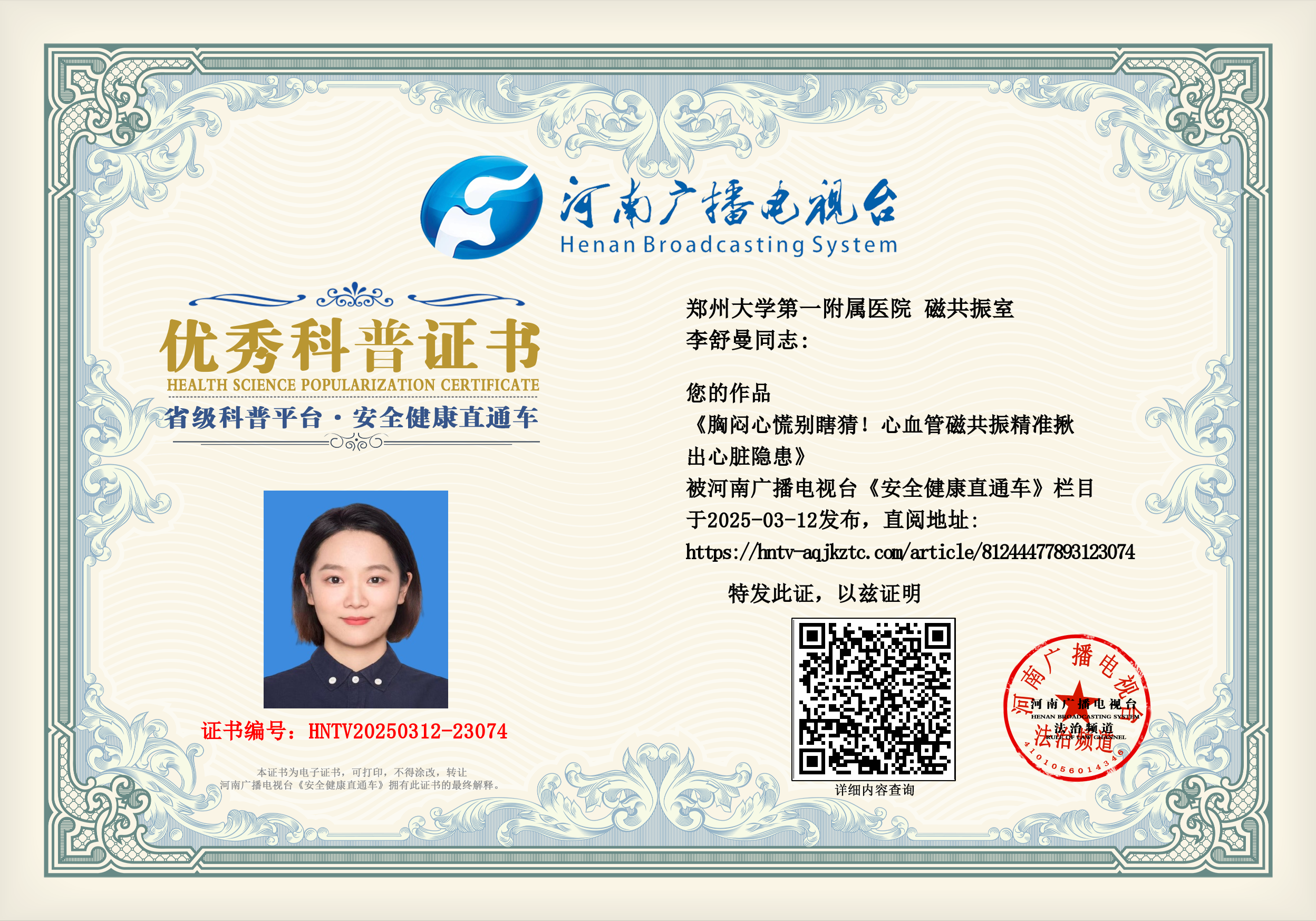 (李舒曼 郑州大学第一附属医院 磁共振室)