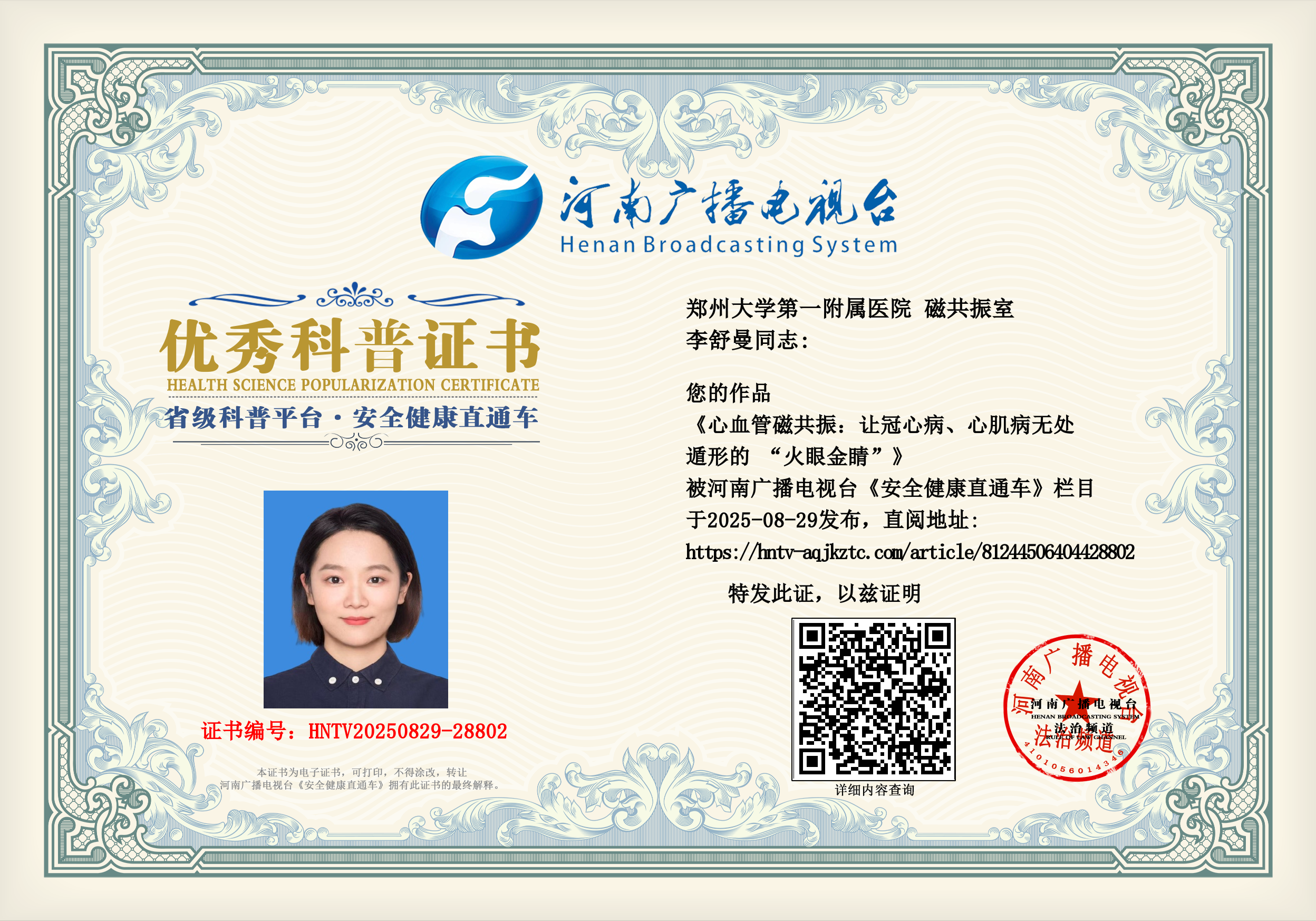 (李舒曼 郑州大学第一附属医院 磁共振室)