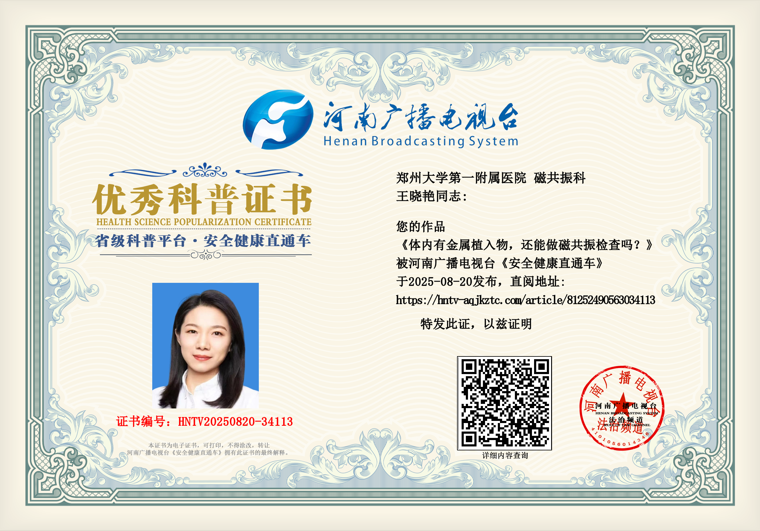 (王晓艳 郑州大学第一附属医院 磁共振科)