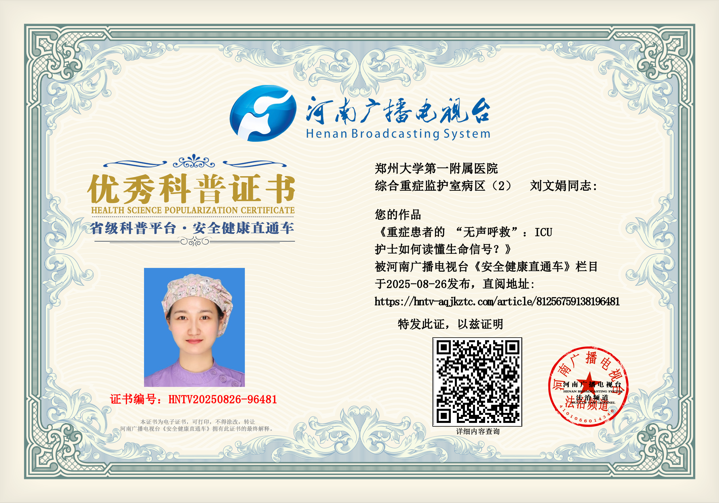 (刘文娟 郑州大学第一附属医院 综合重症监护室病区(2))