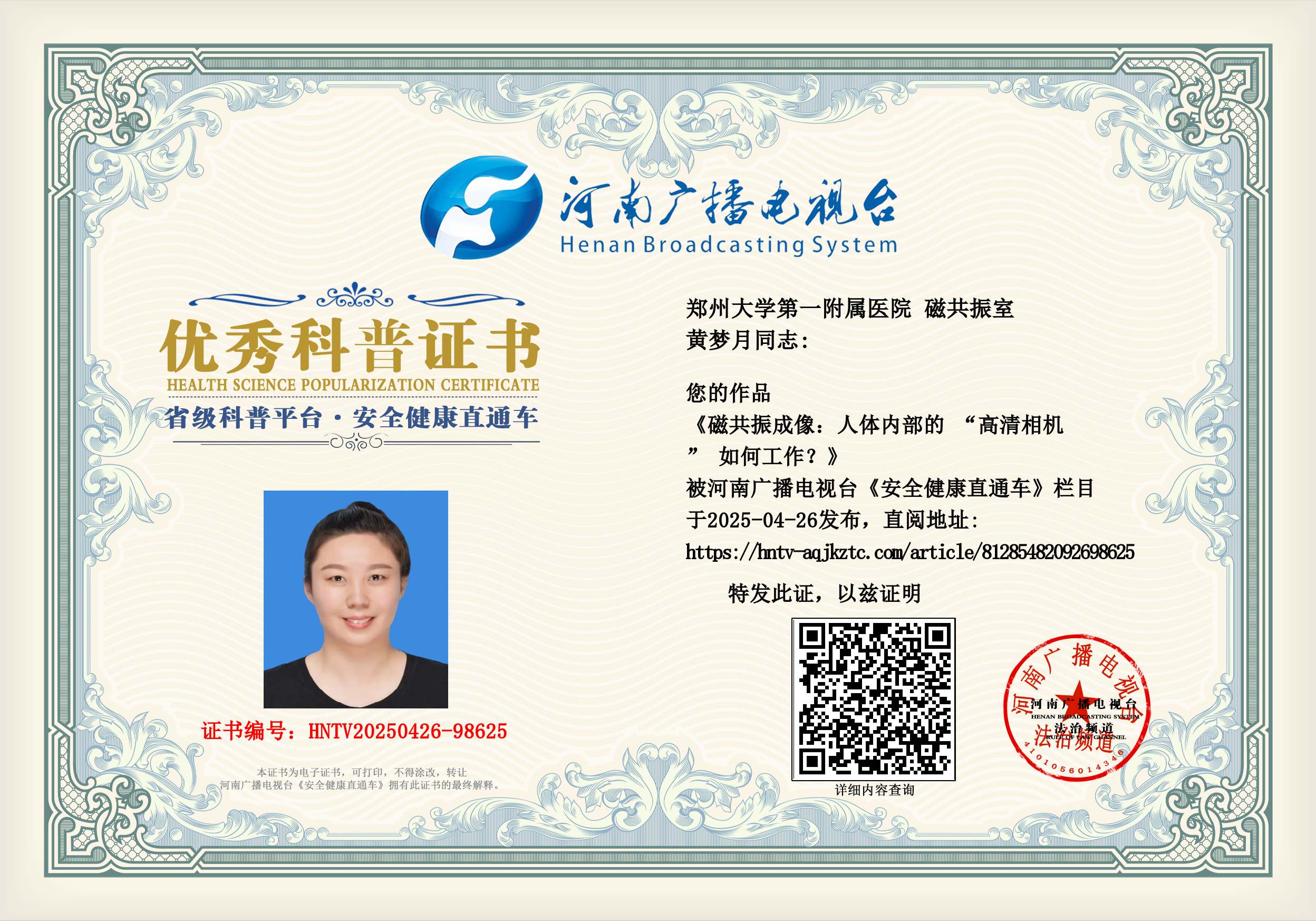 (黄梦月 郑州大学第一附属医院 磁共振室)