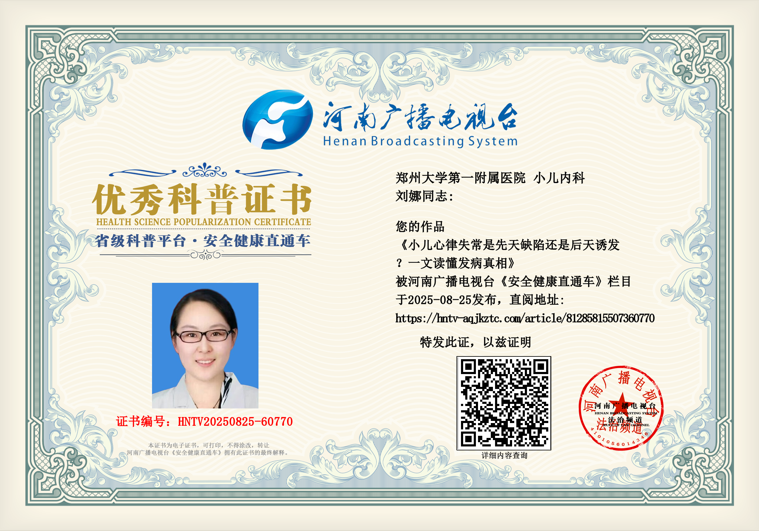 (刘娜 郑州大学第一附属医院 小儿内科)
