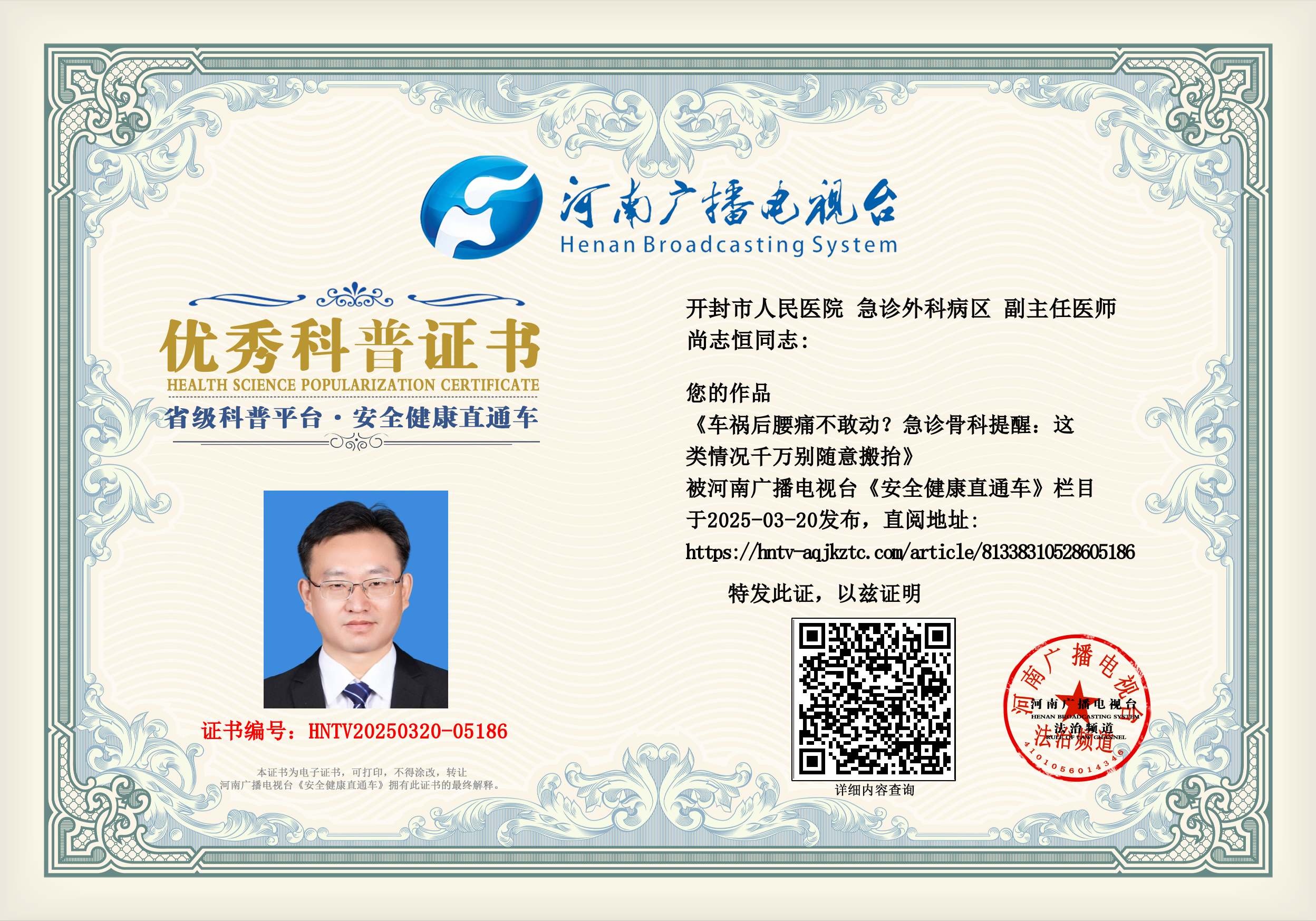 (尚志恒 开封市人民医院 急诊外科病区 副主任医师)