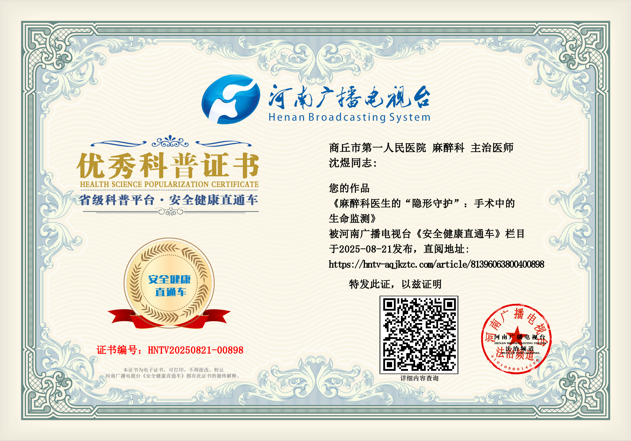 (沈煜 商丘市第一人民医院 麻醉科 主治医师)