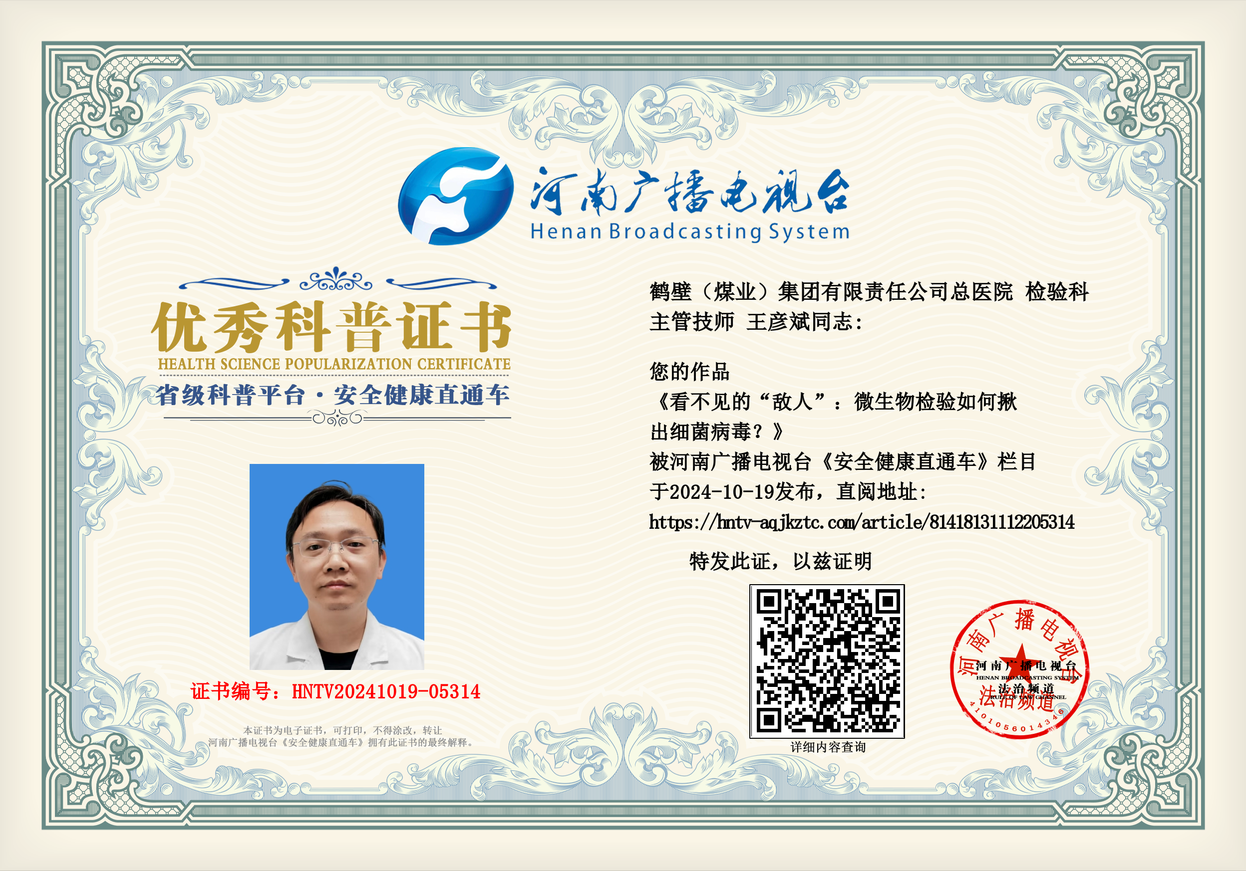 (王彦斌 鹤壁(煤业)集团有限责任公司总医院 检验科 主管技师)