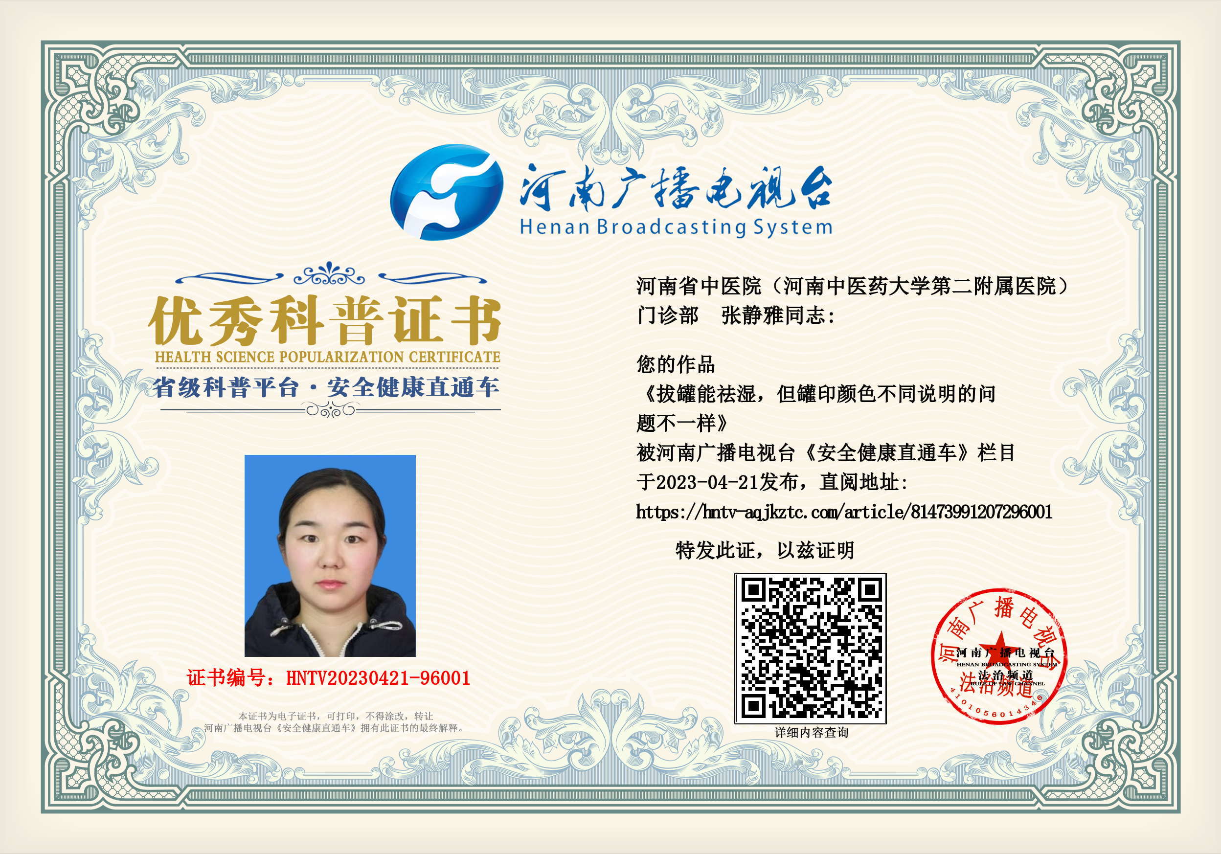 (张静雅 河南省中医院(河南中医药大学第二附属医院) 门诊部)