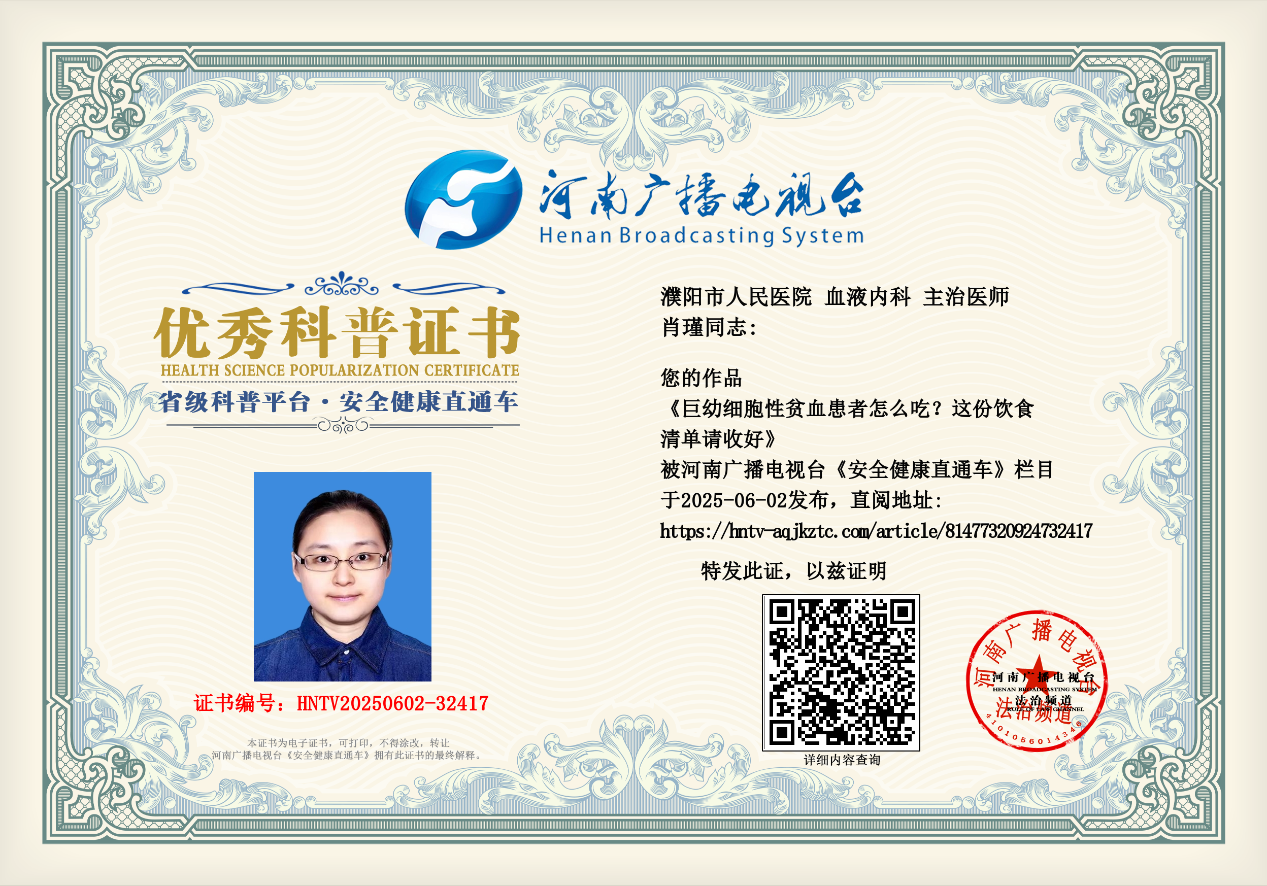 (肖瑾 濮阳市人民医院 血液内科 主治医师)