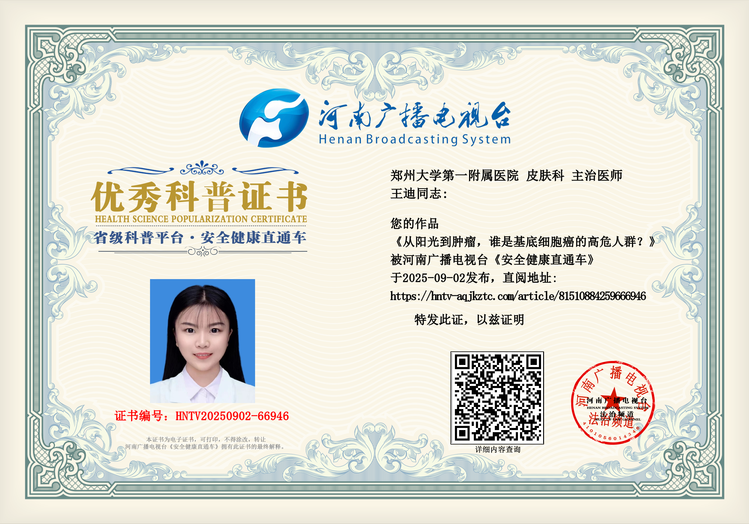 (王迪 郑州大学第一附属医院 皮肤科 主治医师)