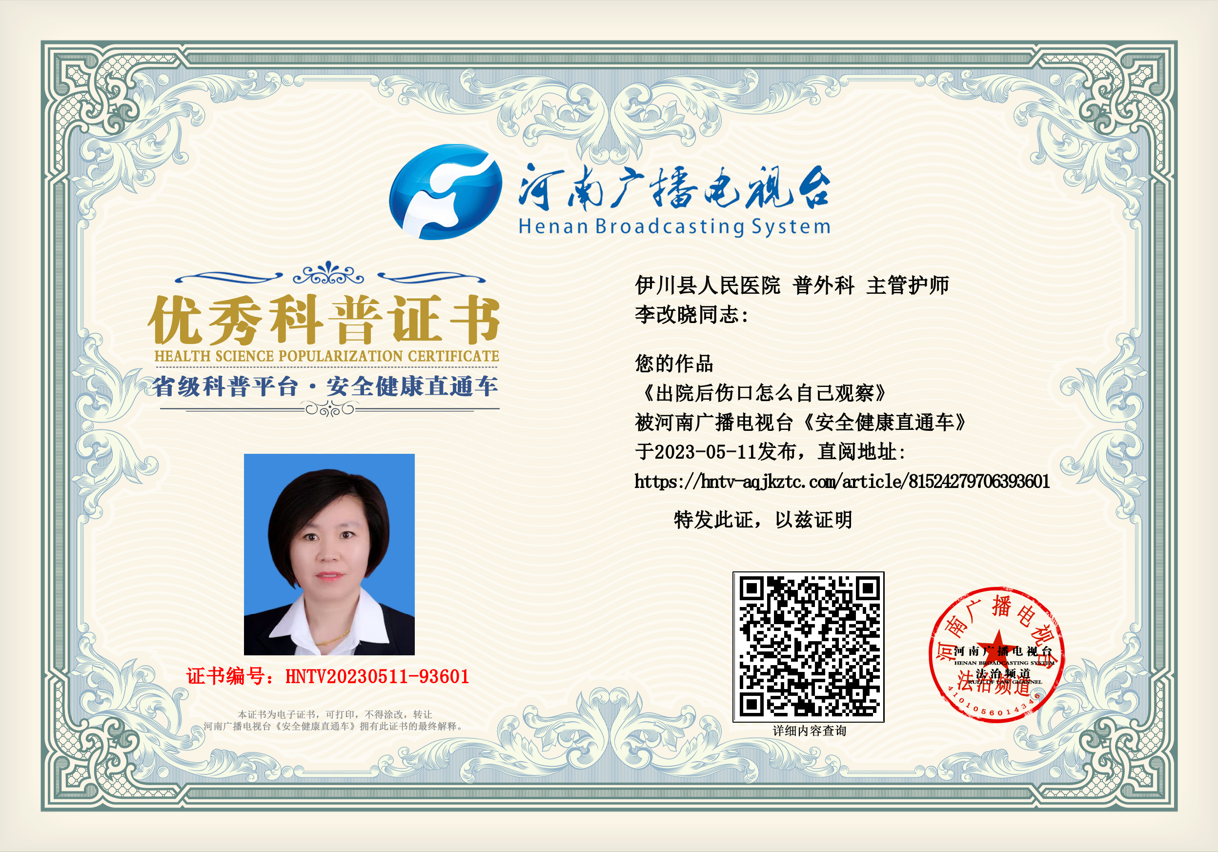 (李改晓 伊川县人民医院 普外科 主管护师)