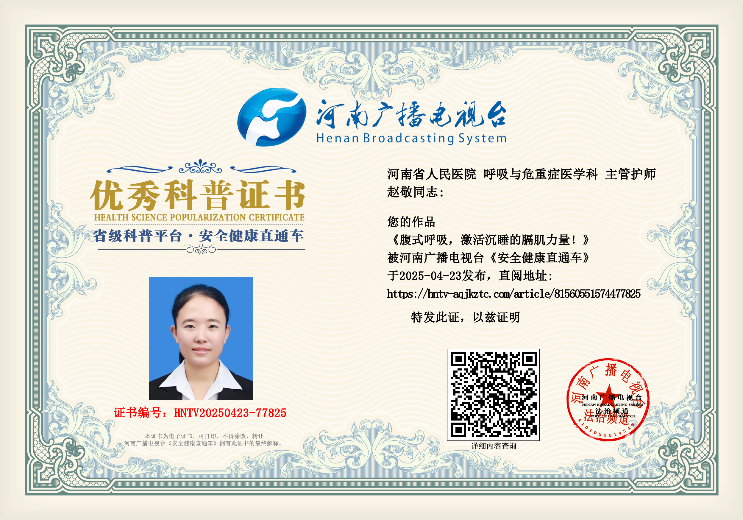 (赵敬 河南省人民医院 呼吸与危重症医学科 主管护师)