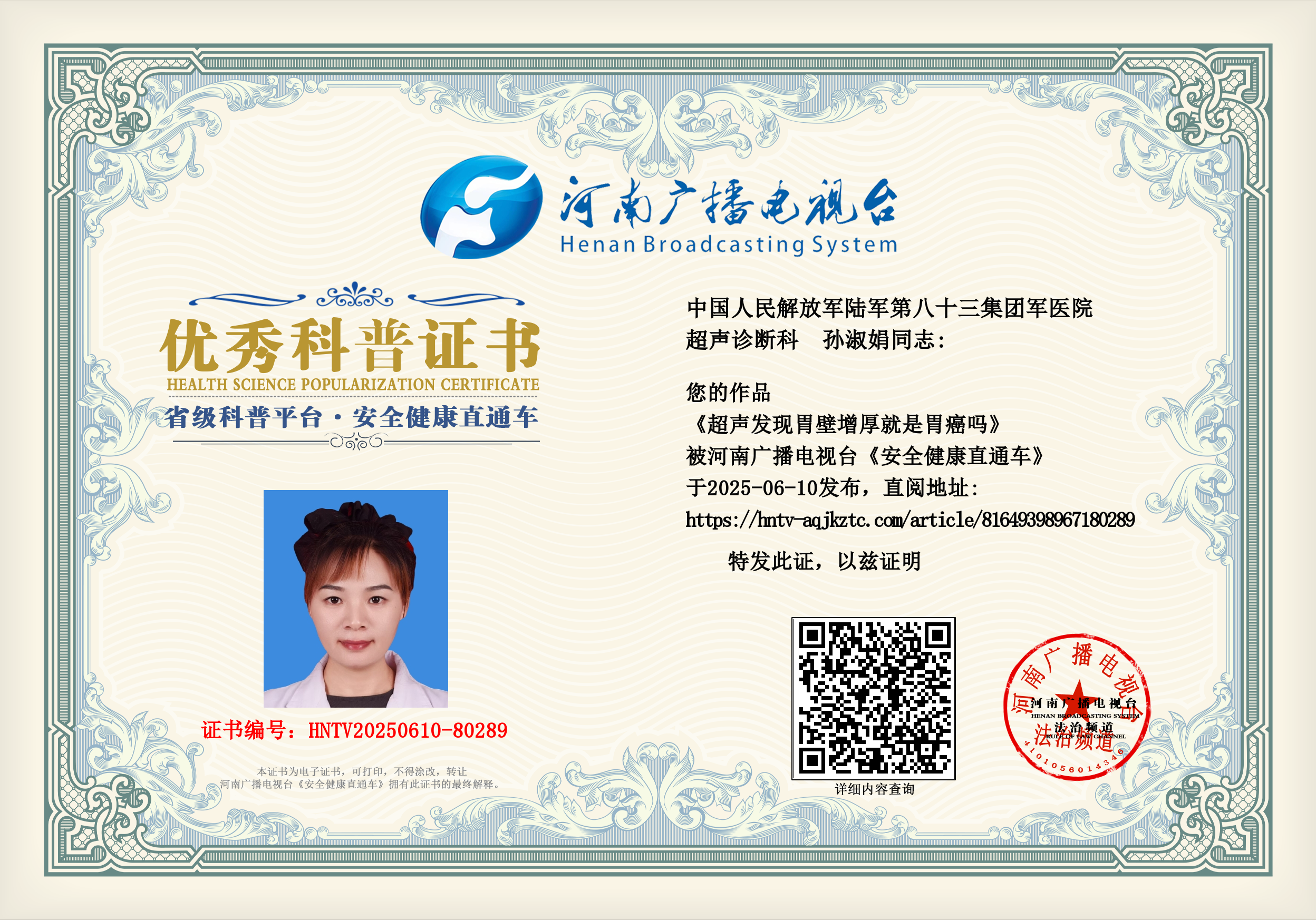 (孙淑娟 中国人民解放军陆军第八十三集团军医院 超声诊断科)