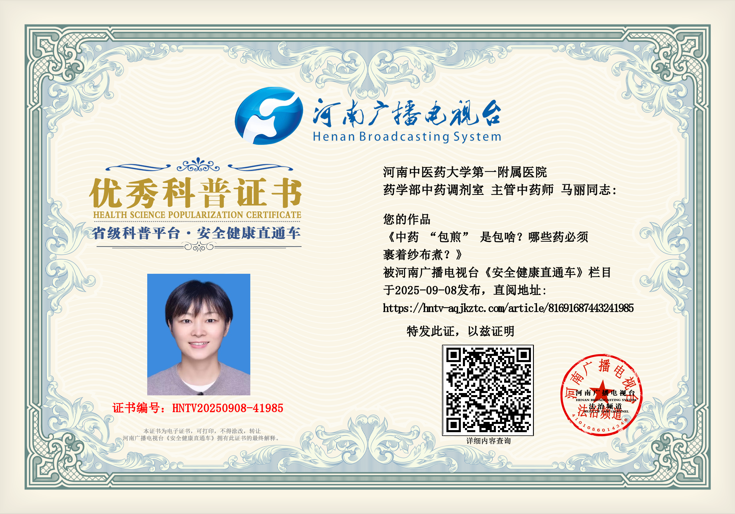 (马丽 河南中医药大学第一附属医院 药学部中药调剂室 主管中药师)