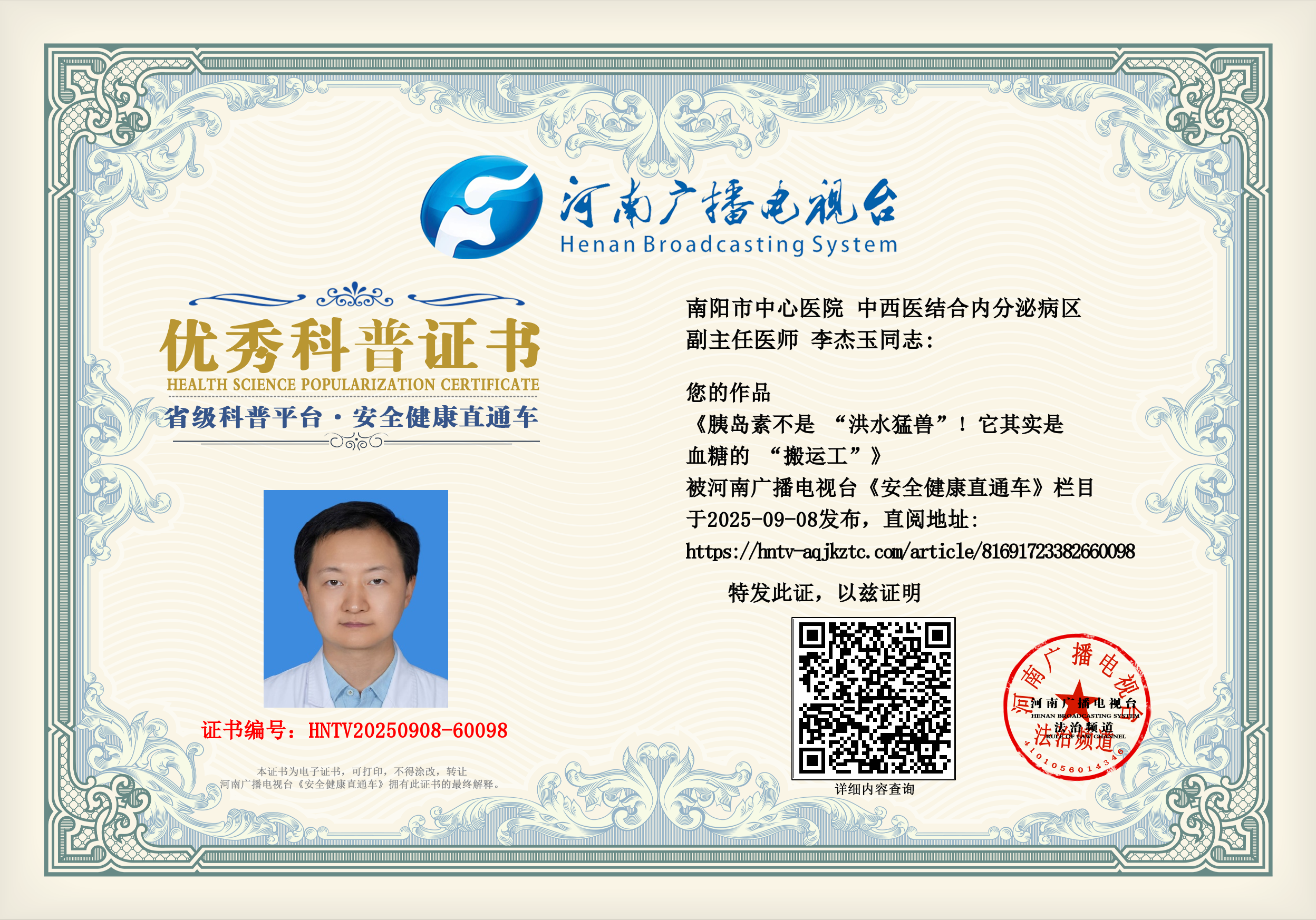 (李杰玉 南阳市中心医院 中西医结合内分泌病区 副主任医师)