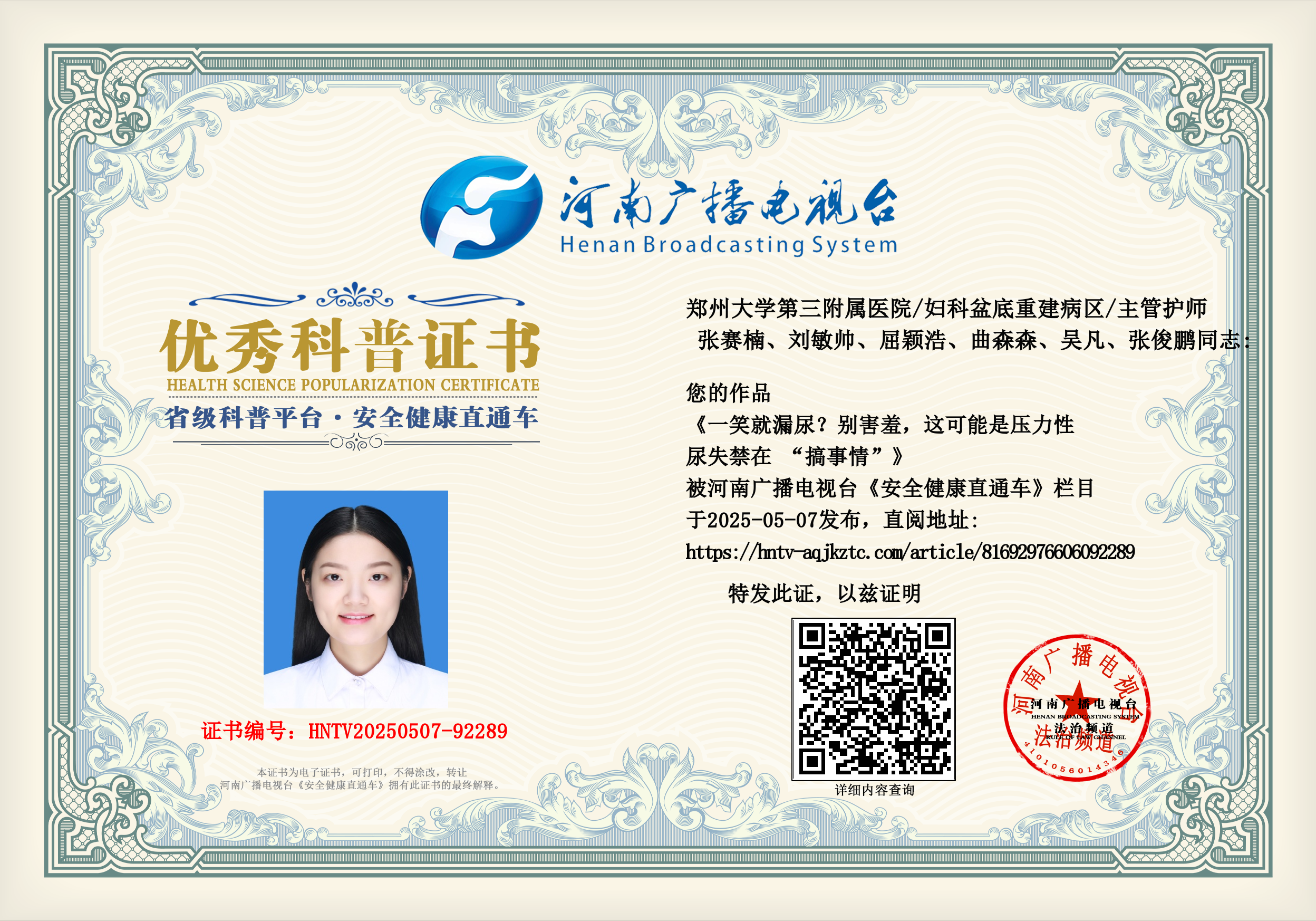 (张赛楠、刘敏帅、屈颖浩、曲森森、吴凡、张俊鹏 郑州大学第三附属医院/妇科盆底重建病区/主管护师)
