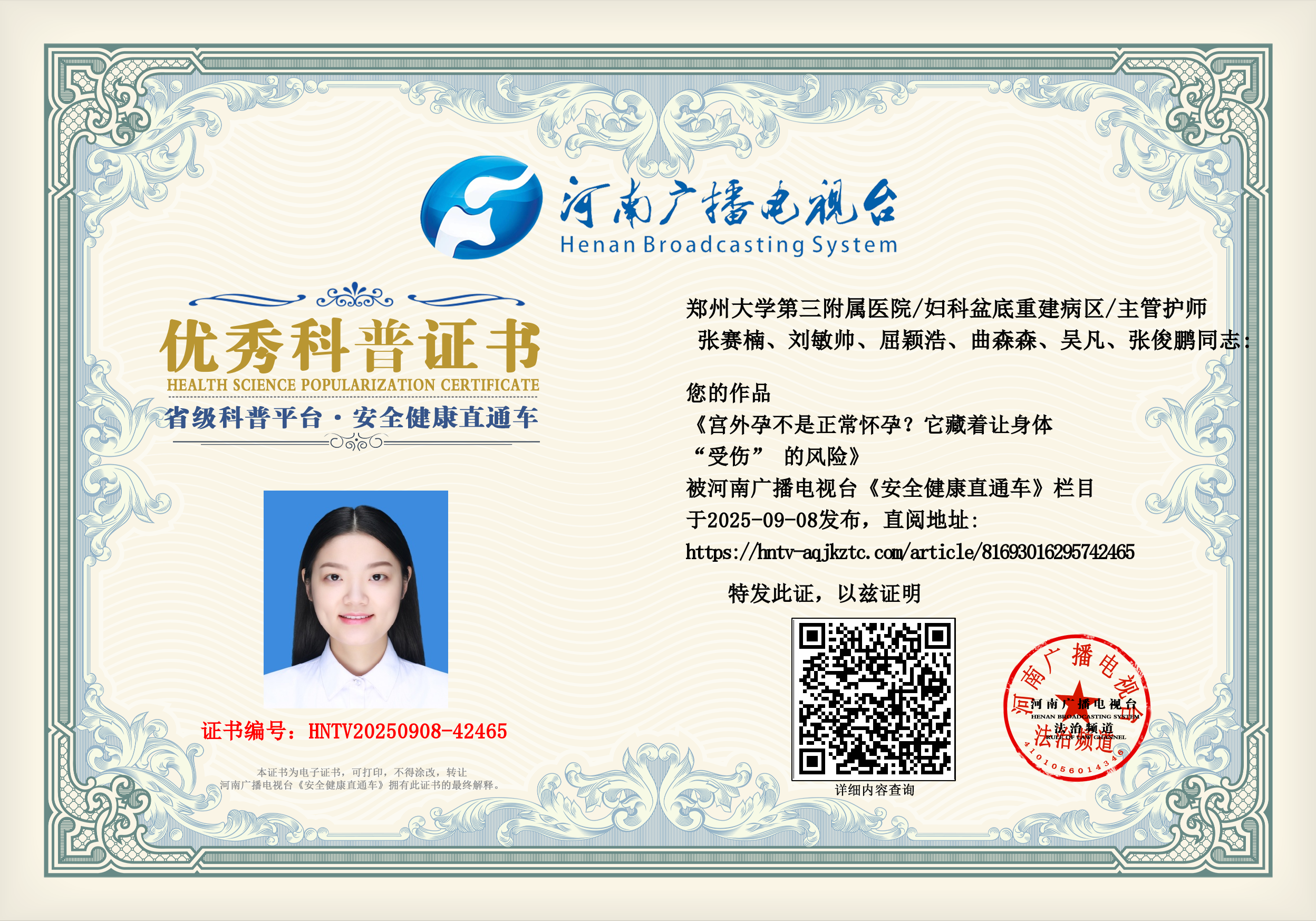 (张赛楠、刘敏帅、屈颖浩、曲森森、吴凡、张俊鹏 郑州大学第三附属医院/妇科盆底重建病区/主管护师)
