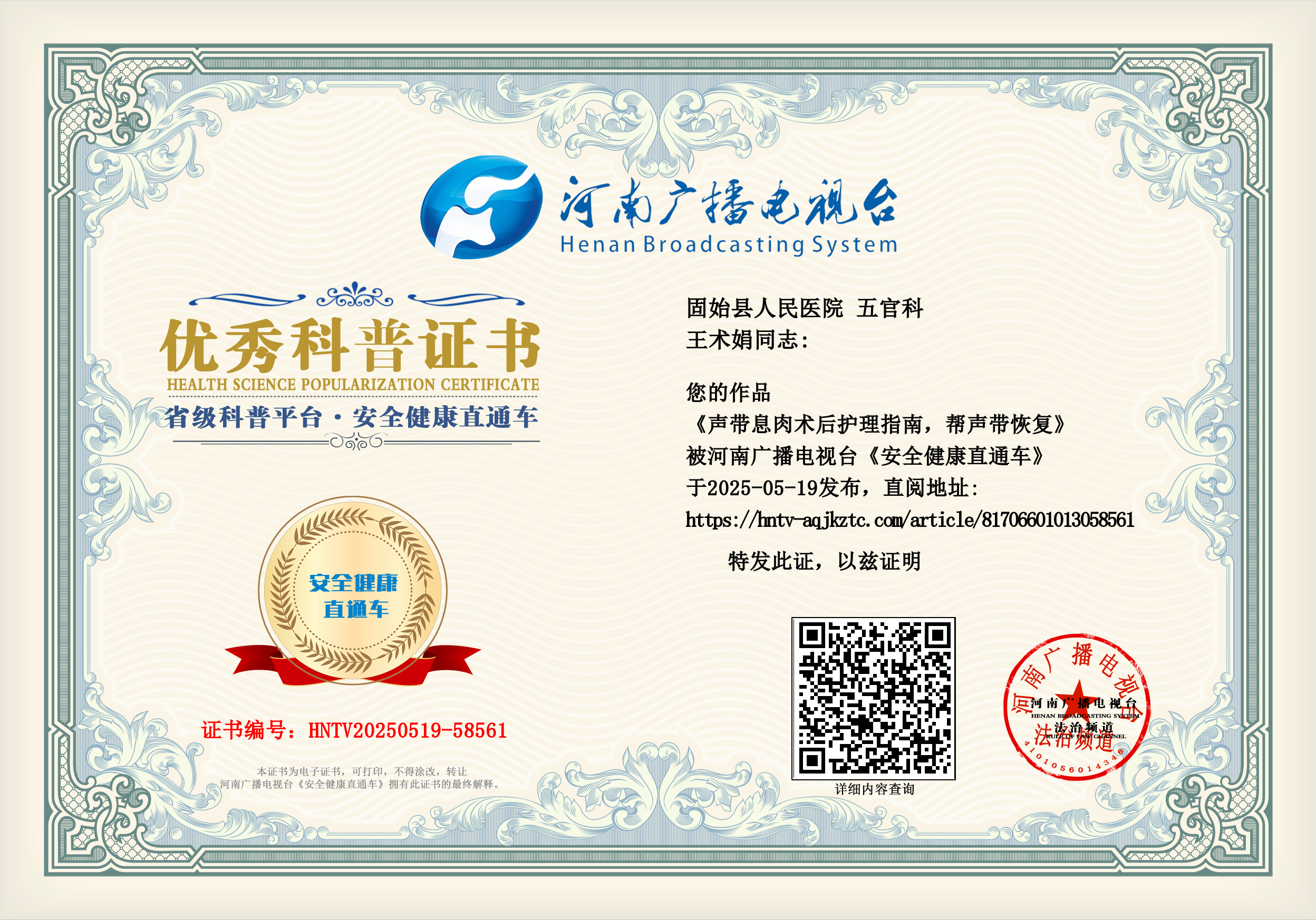 (王术娟 固始县人民医院 五官科)
