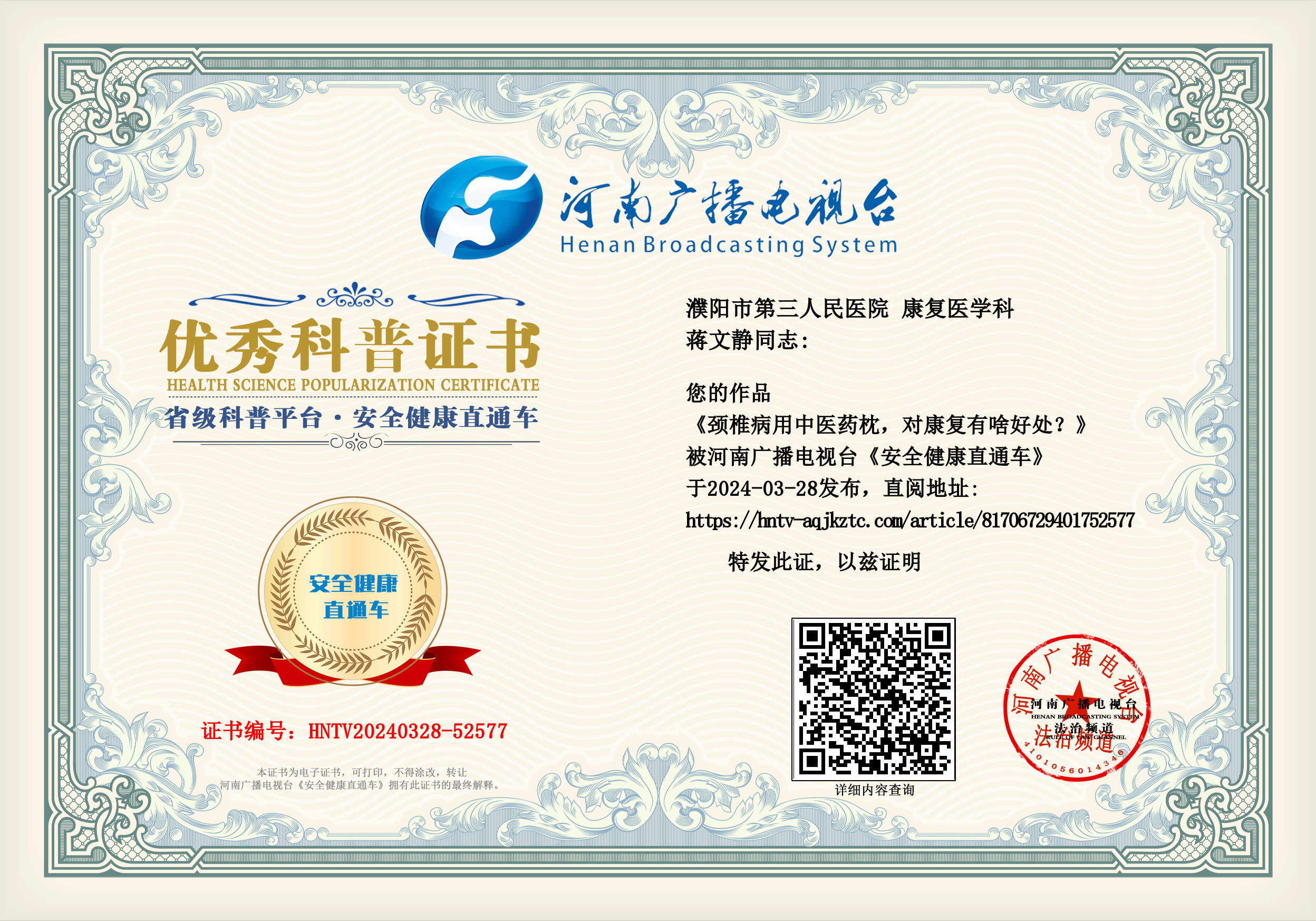 (蒋文静 濮阳市第三人民医院 康复医学科)