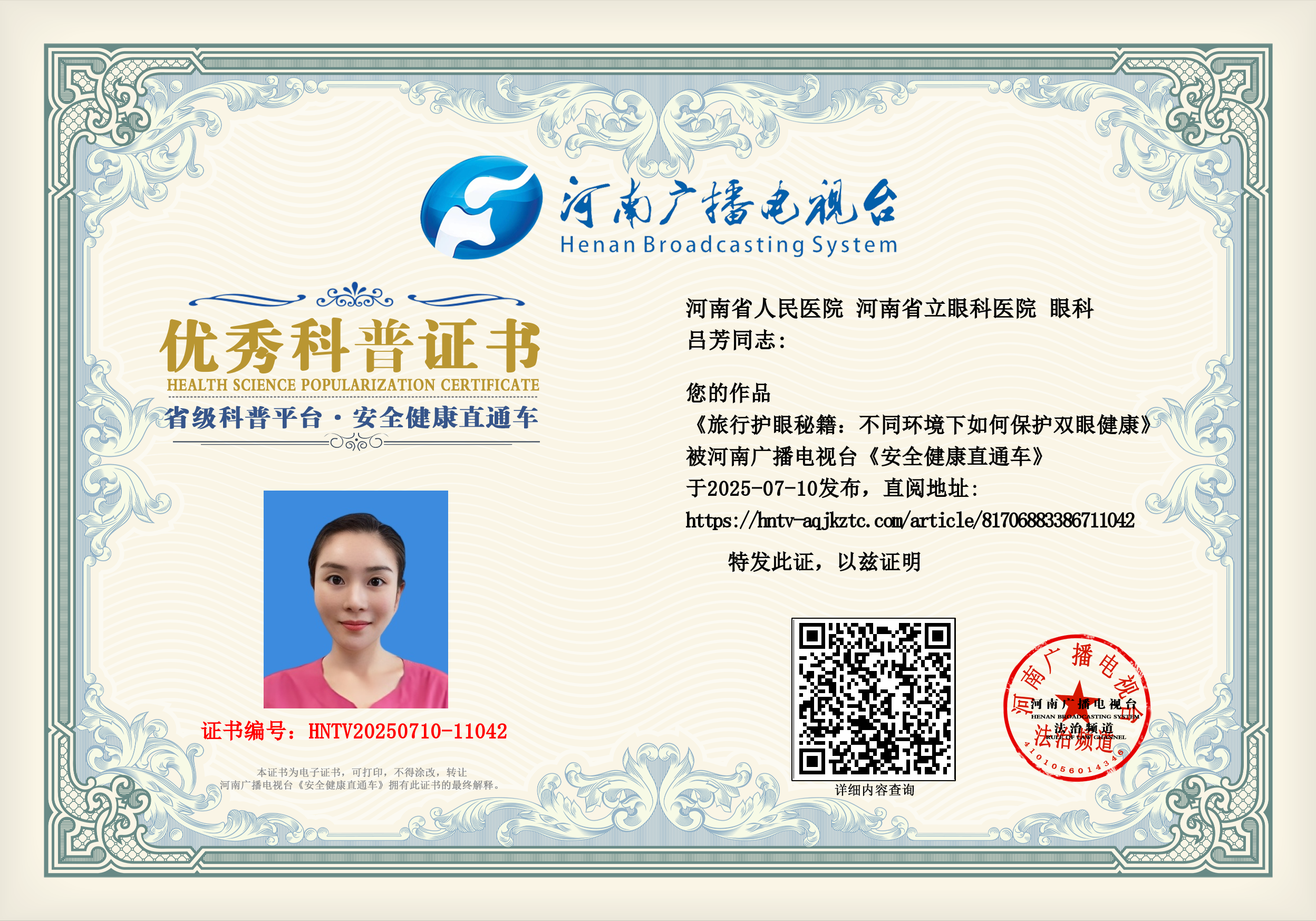 (吕芳 河南省人民医院 河南省立眼科医院 眼科)