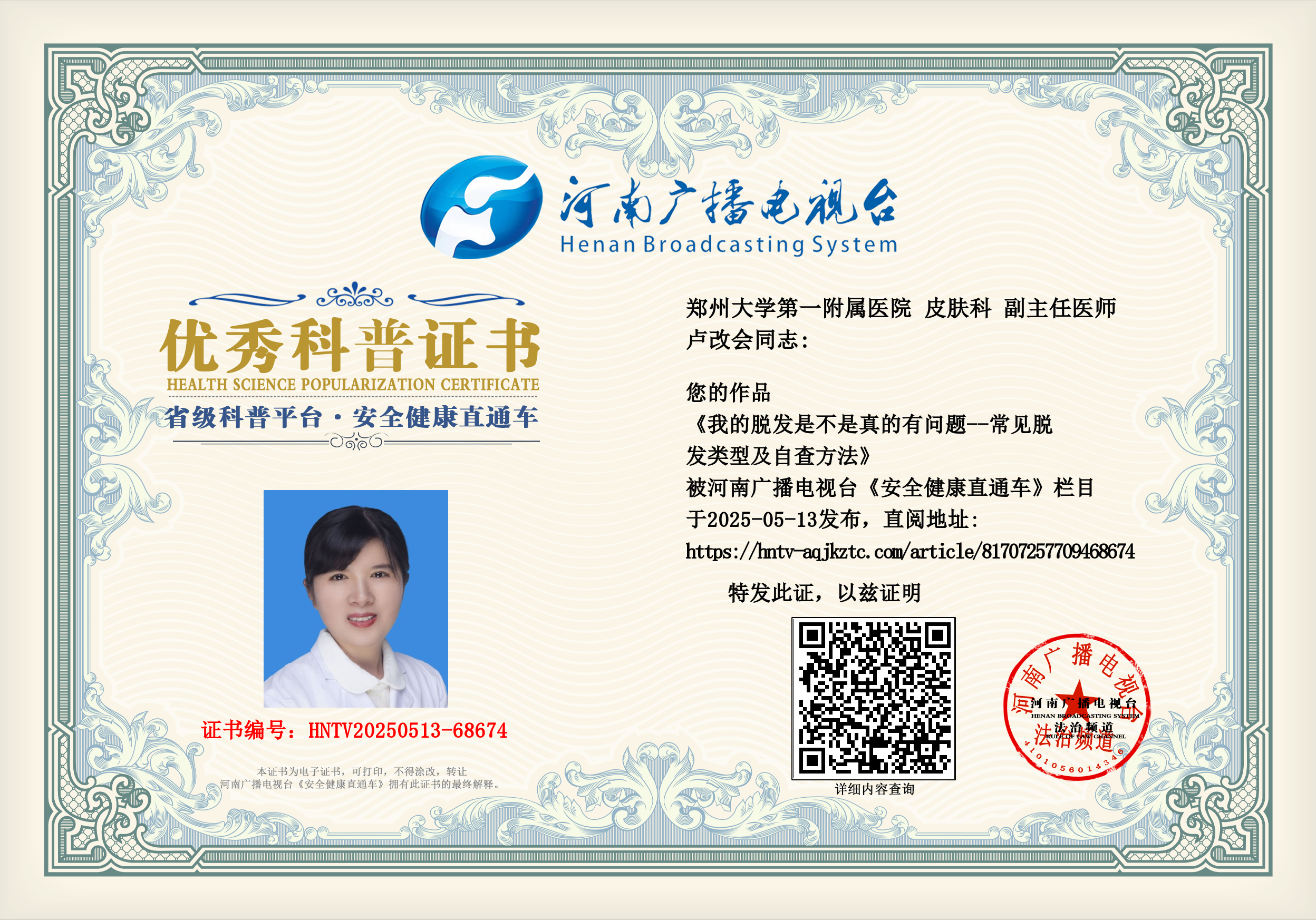 (卢改会 郑州大学第一附属医院 皮肤科 副主任医师)
