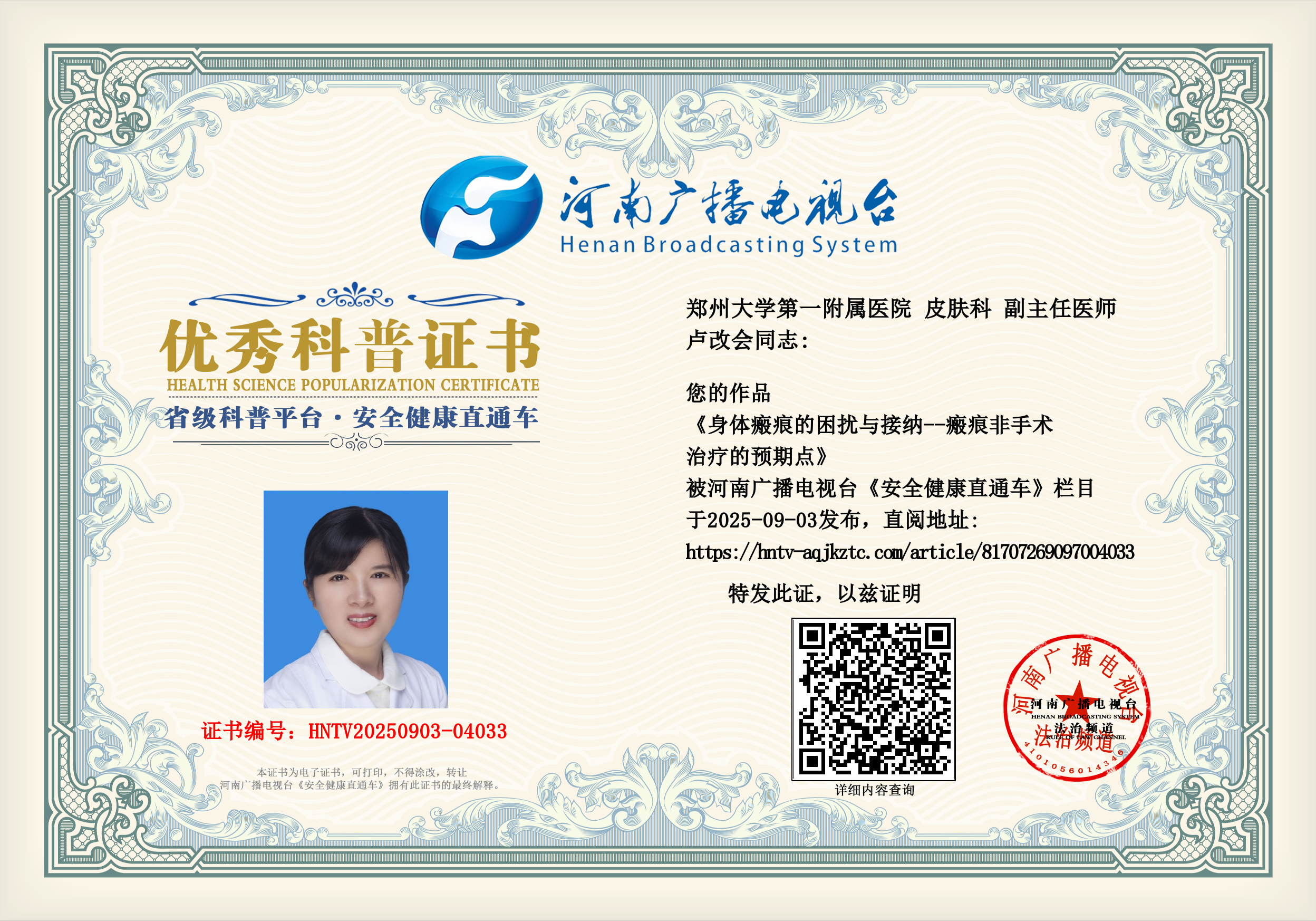 (卢改会 郑州大学第一附属医院 皮肤科 副主任医师)