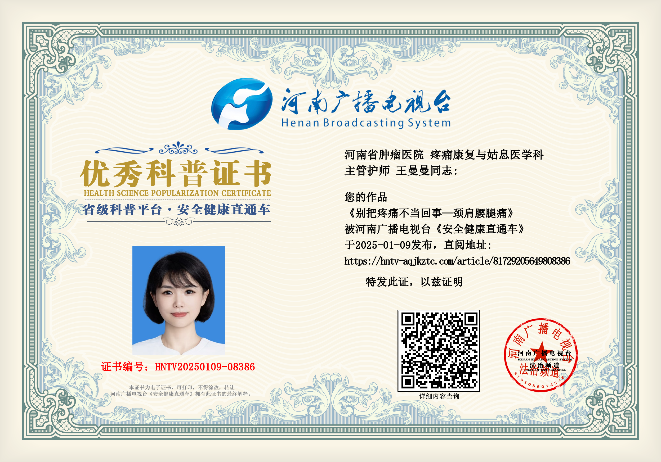 (王曼曼 河南省肿瘤医院 疼痛康复与姑息医学科 主管护师)