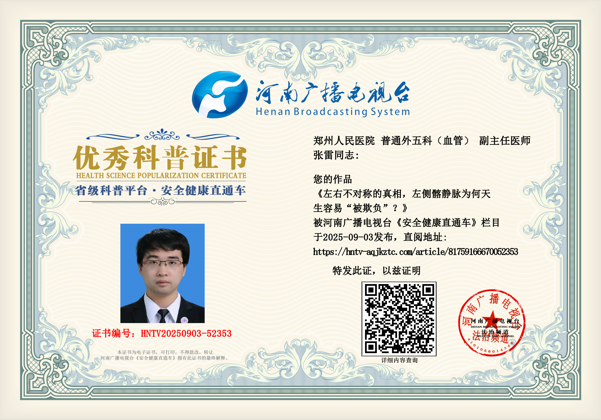 (张雷 郑州人民医院 普通外五科(血管) 副主任医师)