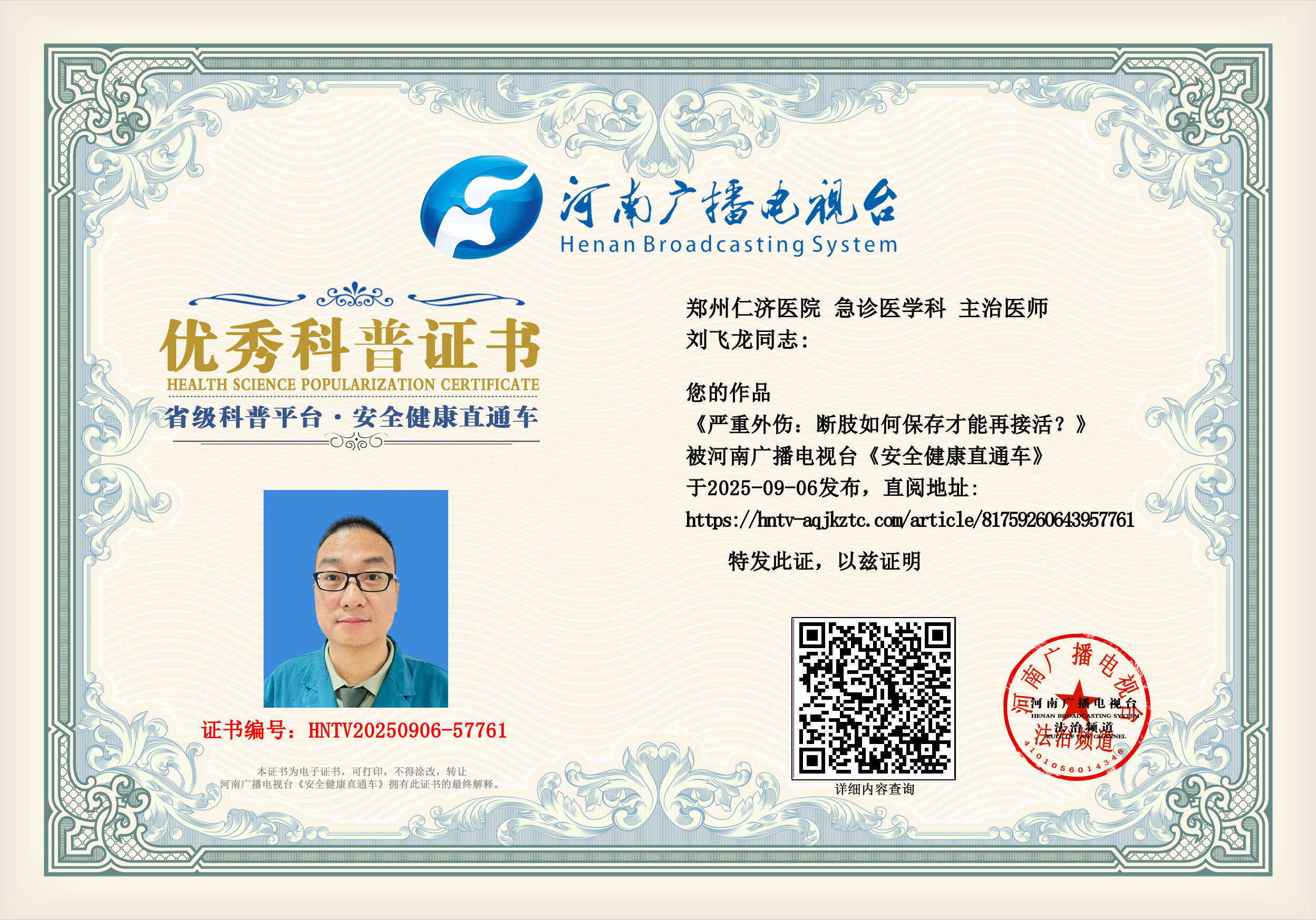 (刘飞龙 郑州仁济医院 急诊医学科 主治医师)
