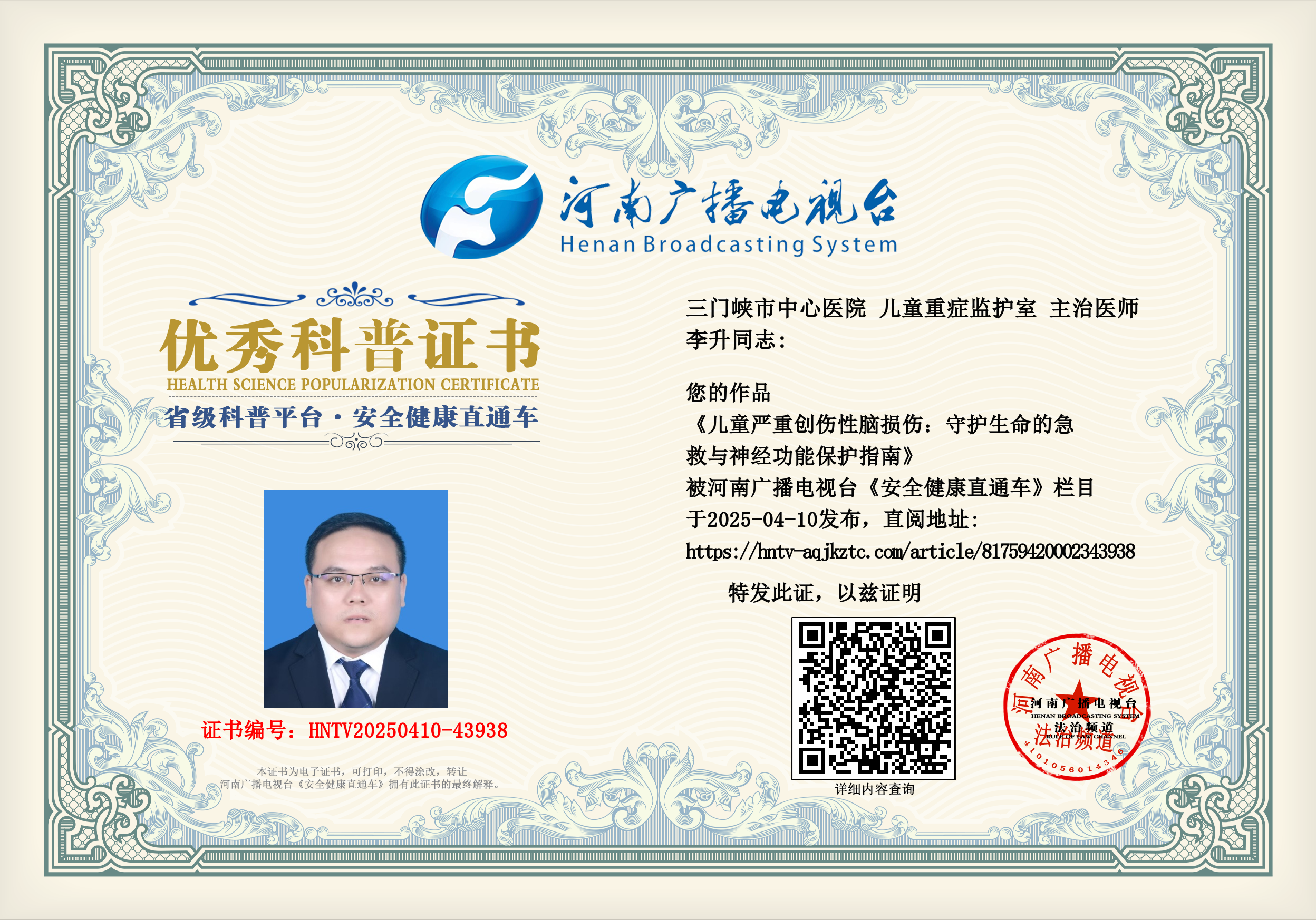 (李升 三门峡市中心医院 儿童重症监护室 主治医师)