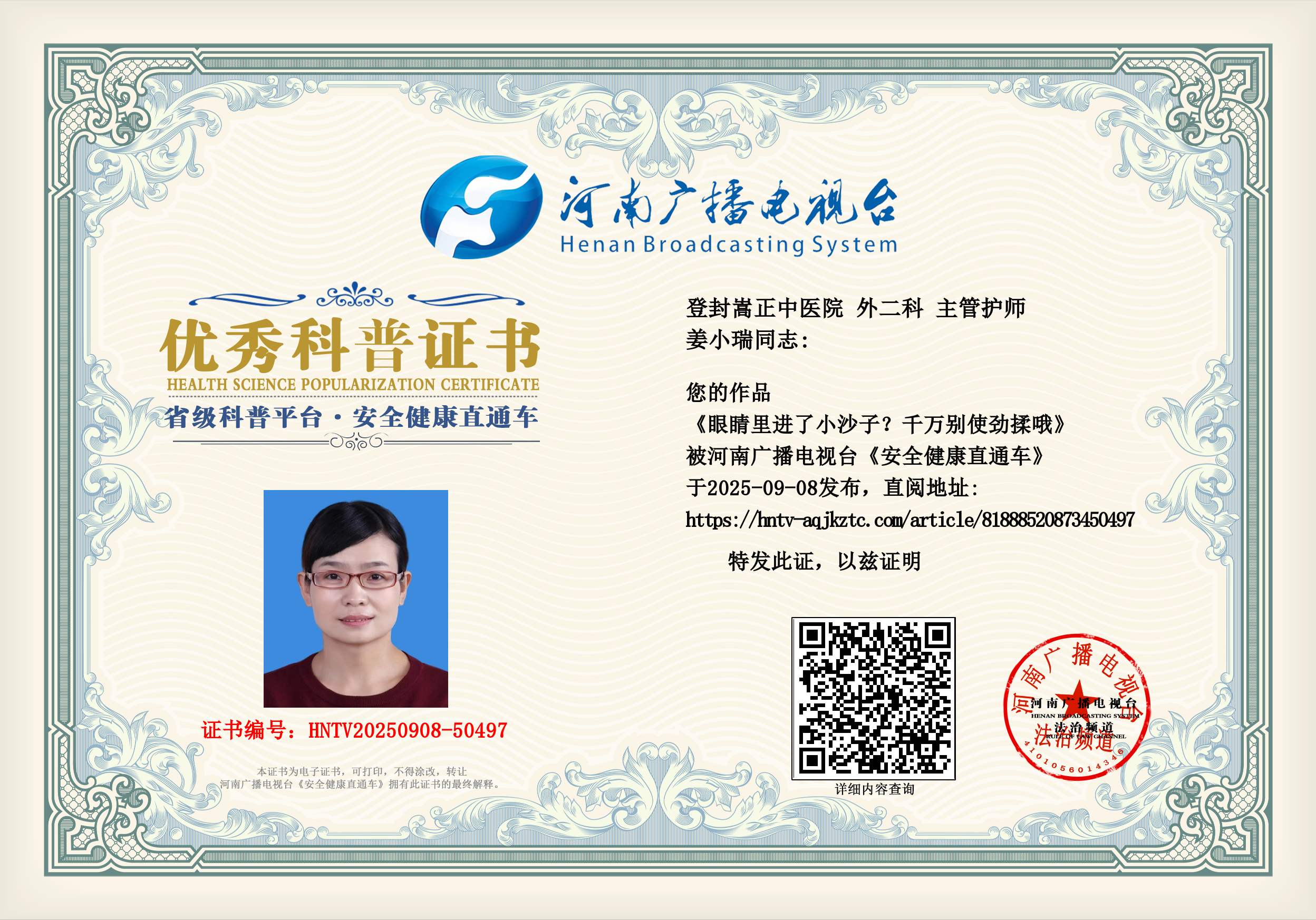 (姜小瑞 登封嵩正中医院 外二科 主管护师)